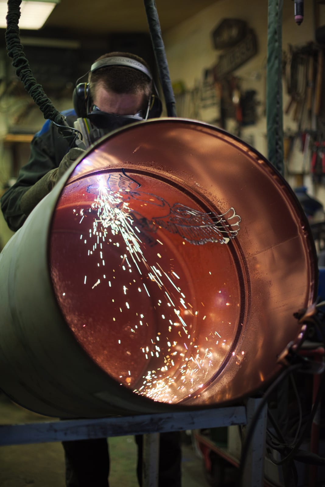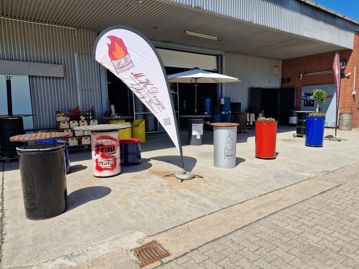 Nach Erlaubnis vom Kunden nahm ich fünf Tonnen mit und fertigte eine Feuertonne mit Motiv an.