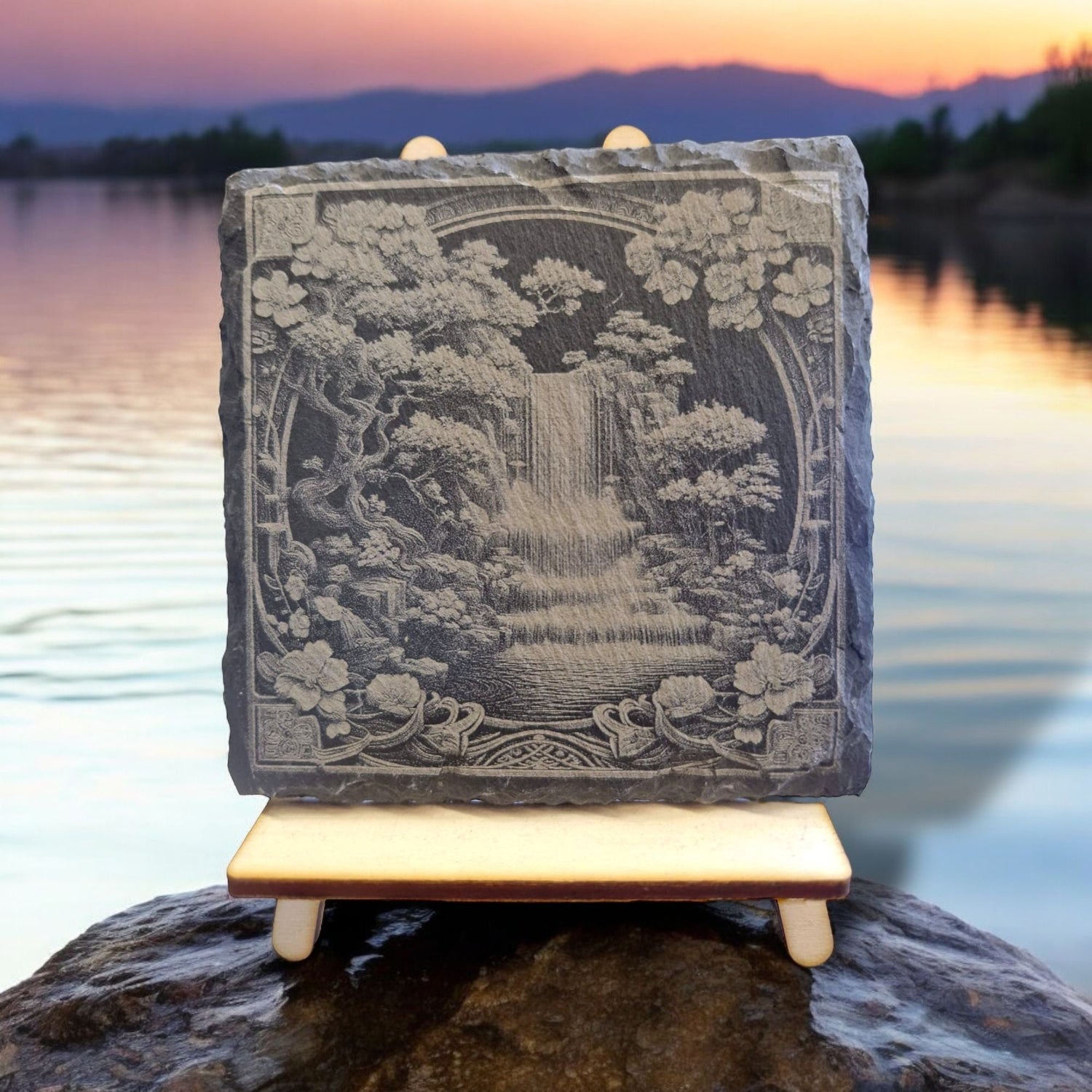 Alle Schieferuntersetzer haben das Maß Eckig 10cm x 10cm Rund 10cm im...