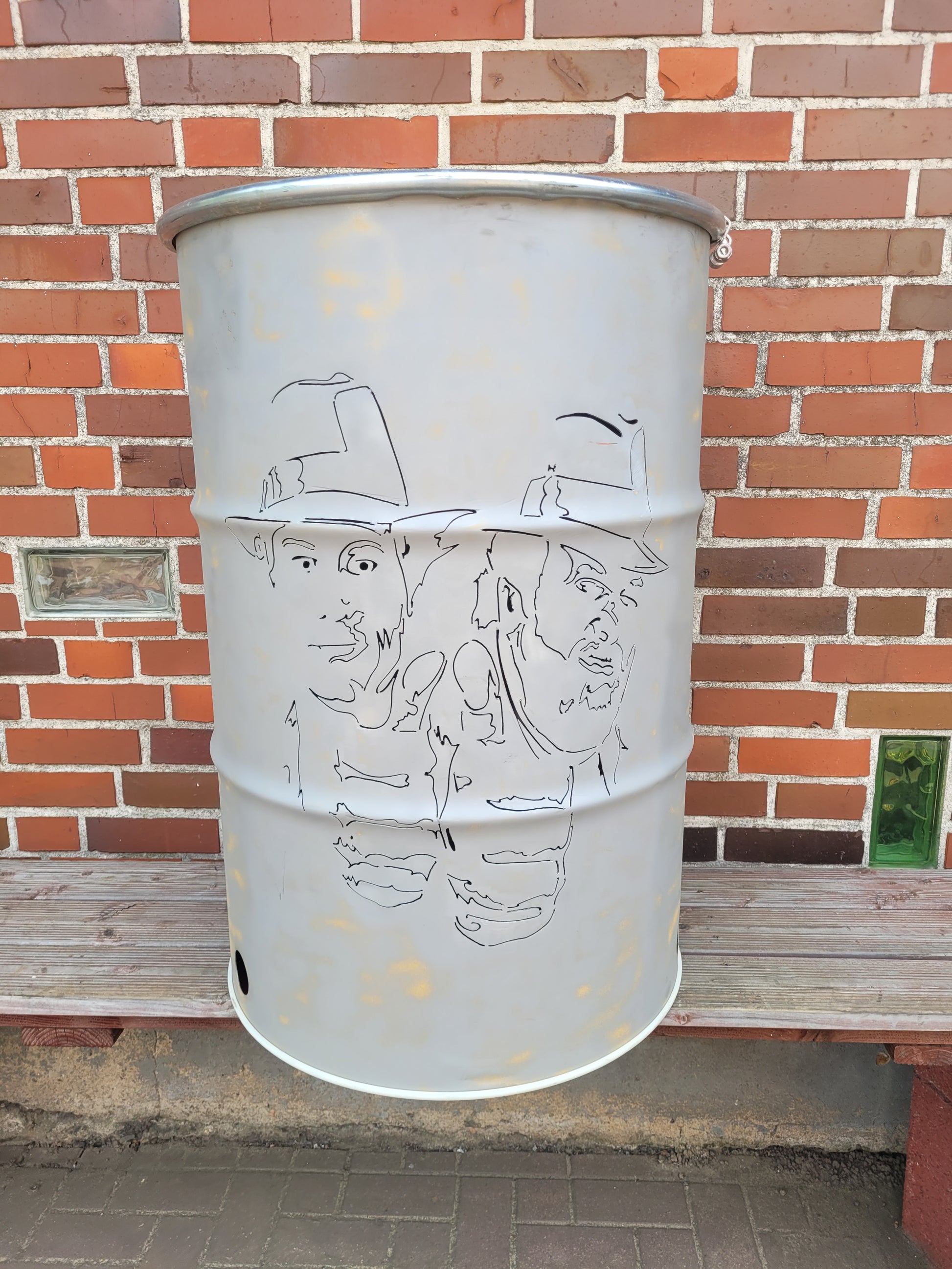 My fire barrels combine high-quality motifs with sturdy sheet steel, which stands for robustness and longevity. They are ideal as a gift or as an enrichment for your own garden . Experience numerous beautiful evenings with my fire barrels in the company of friends or alone. The fire barrel comes in a sandblasted condition, which means there are no paint residues to be found.
