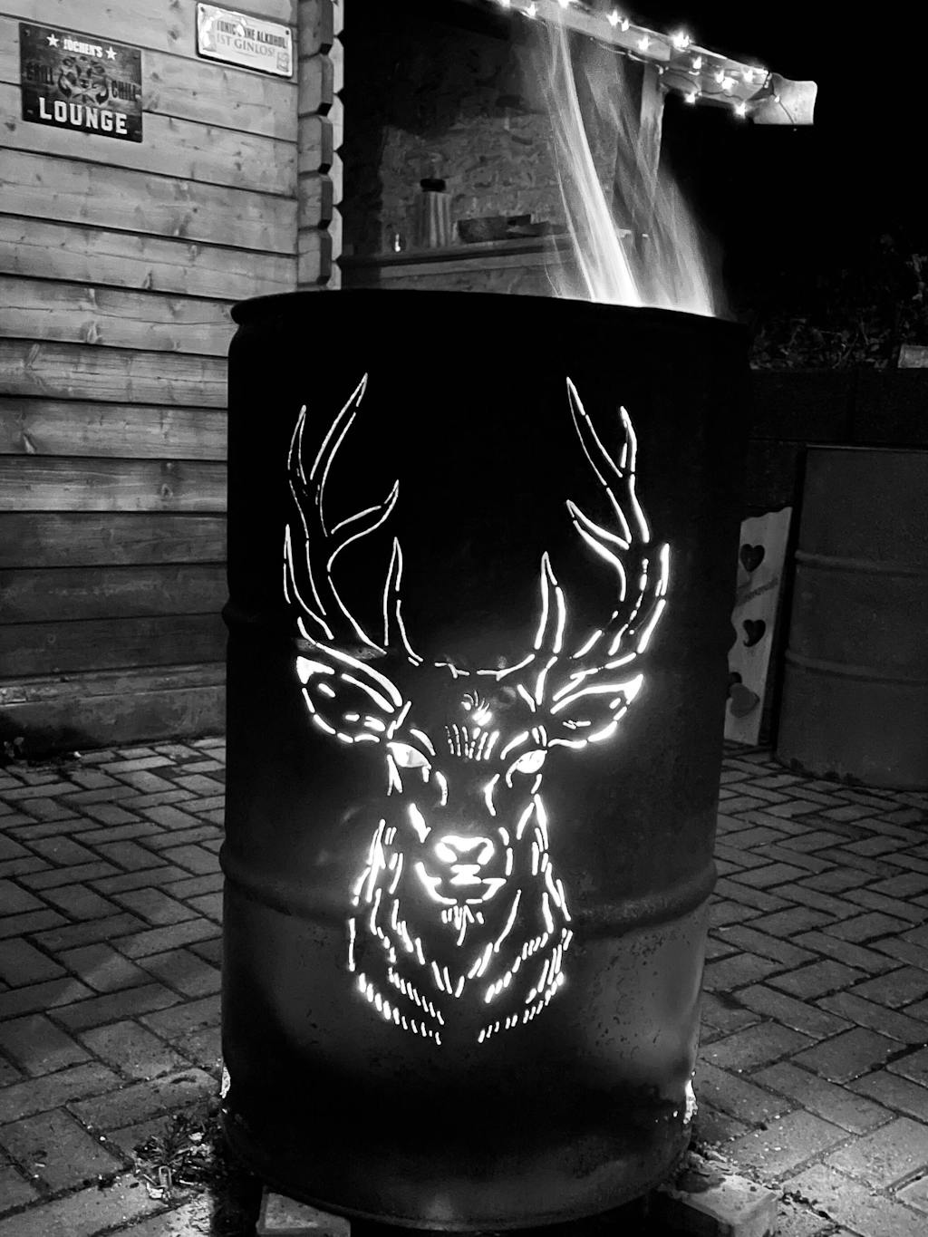 My fire barrels combine high-quality motifs with sturdy sheet steel, which stands for robustness and longevity. They are ideal as a gift or as an enrichment for your own garden . Experience numerous beautiful evenings with my fire barrels in the company of friends or alone. The fire barrel comes in a sandblasted condition, which means there are no paint residues to be found.