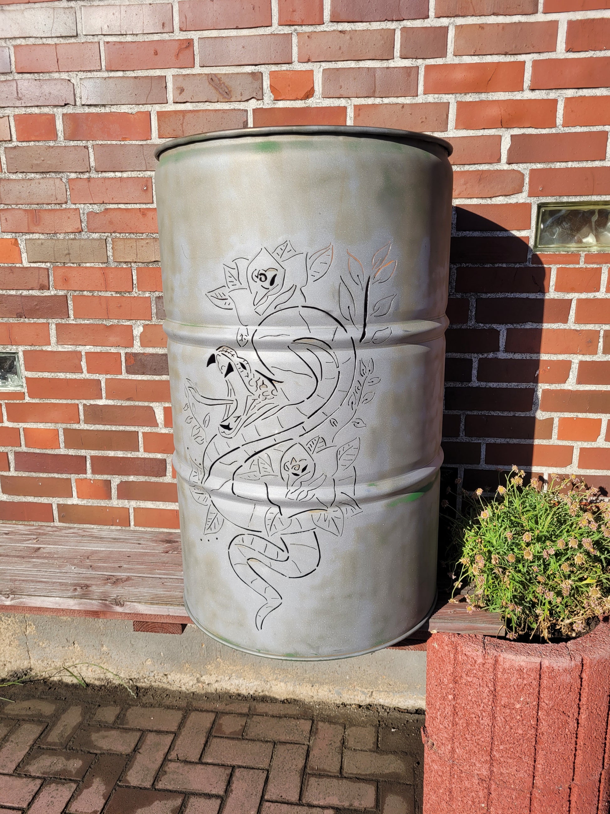 My fire barrels combine high-quality motifs with sturdy sheet steel, which stands for robustness and longevity. They are ideal as a gift or as an enrichment for your own garden . Experience numerous beautiful evenings with my fire barrels in the company of friends or alone. The fire barrel comes in a sandblasted condition, which means there are no paint residues to be found.