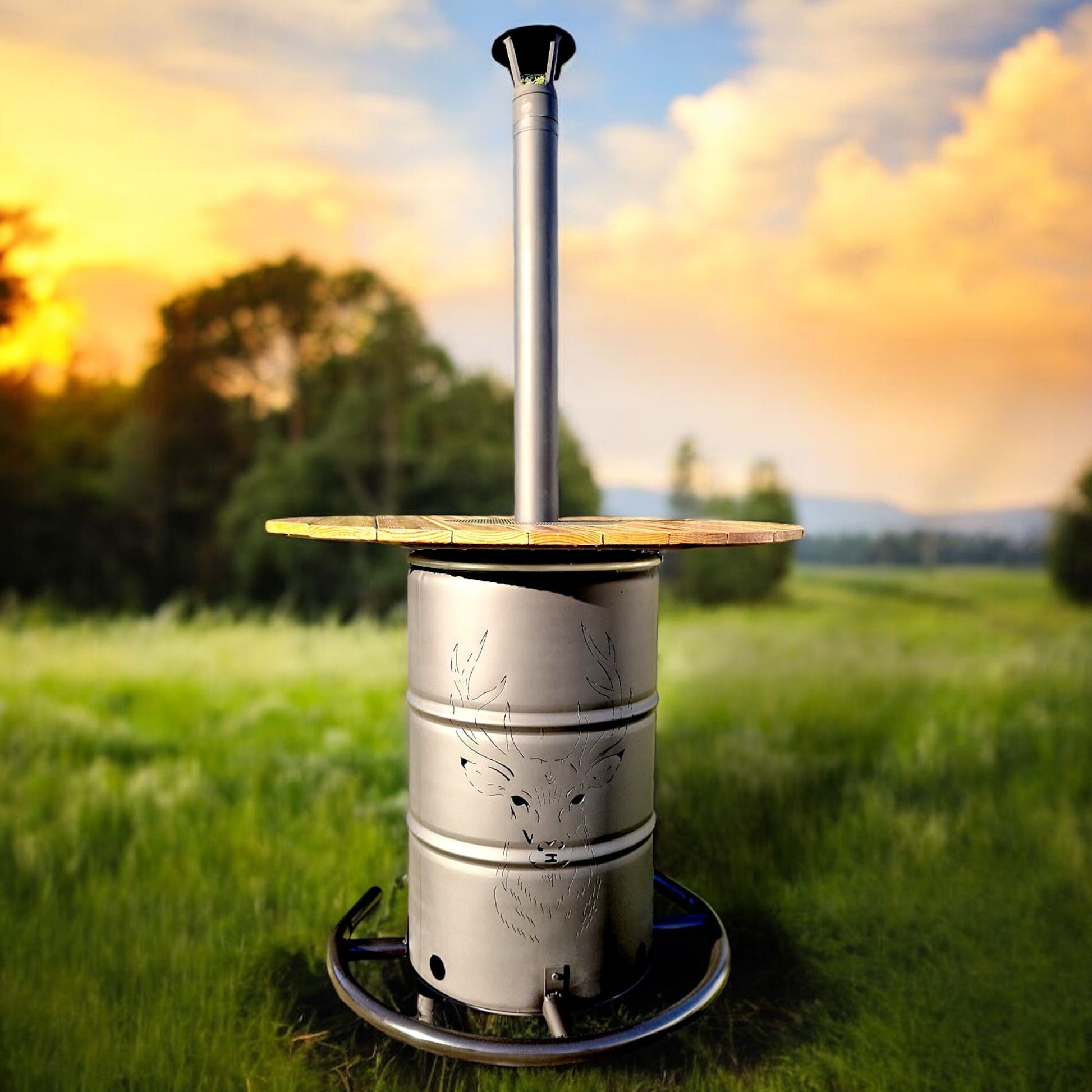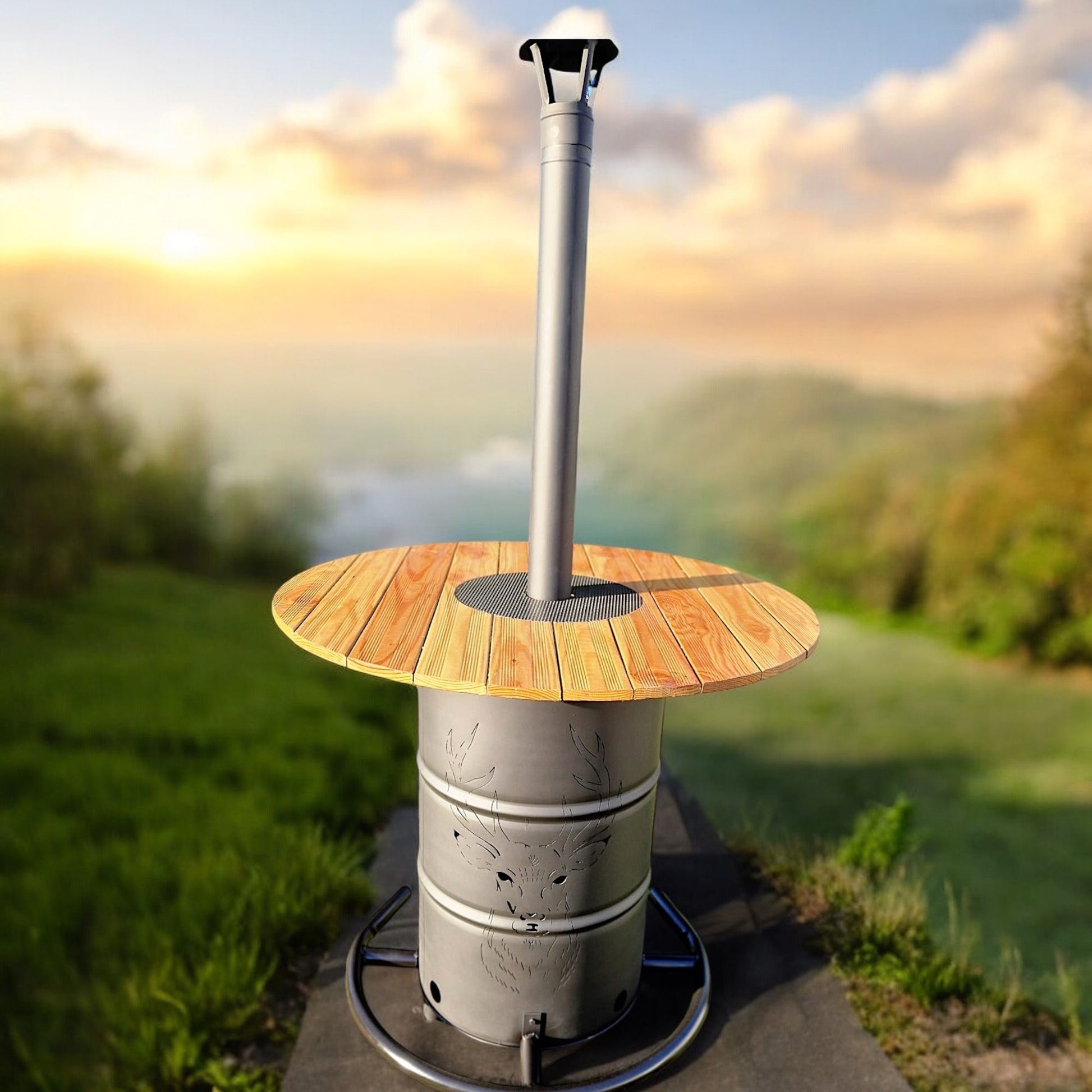 and a practical exhaust pipe . Enjoy warmth and function in one. An opening compartment allows for easy lighting and cleaning .