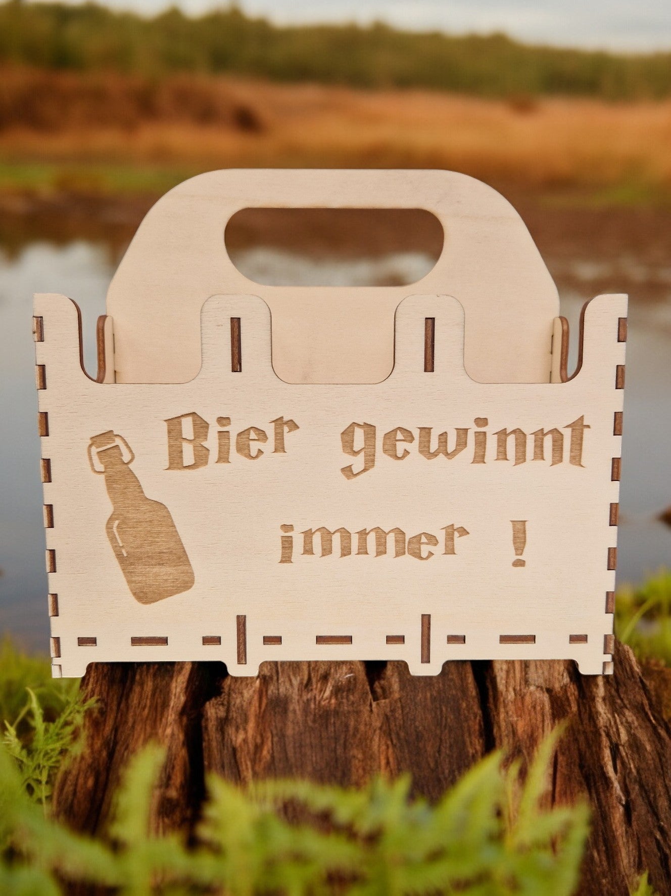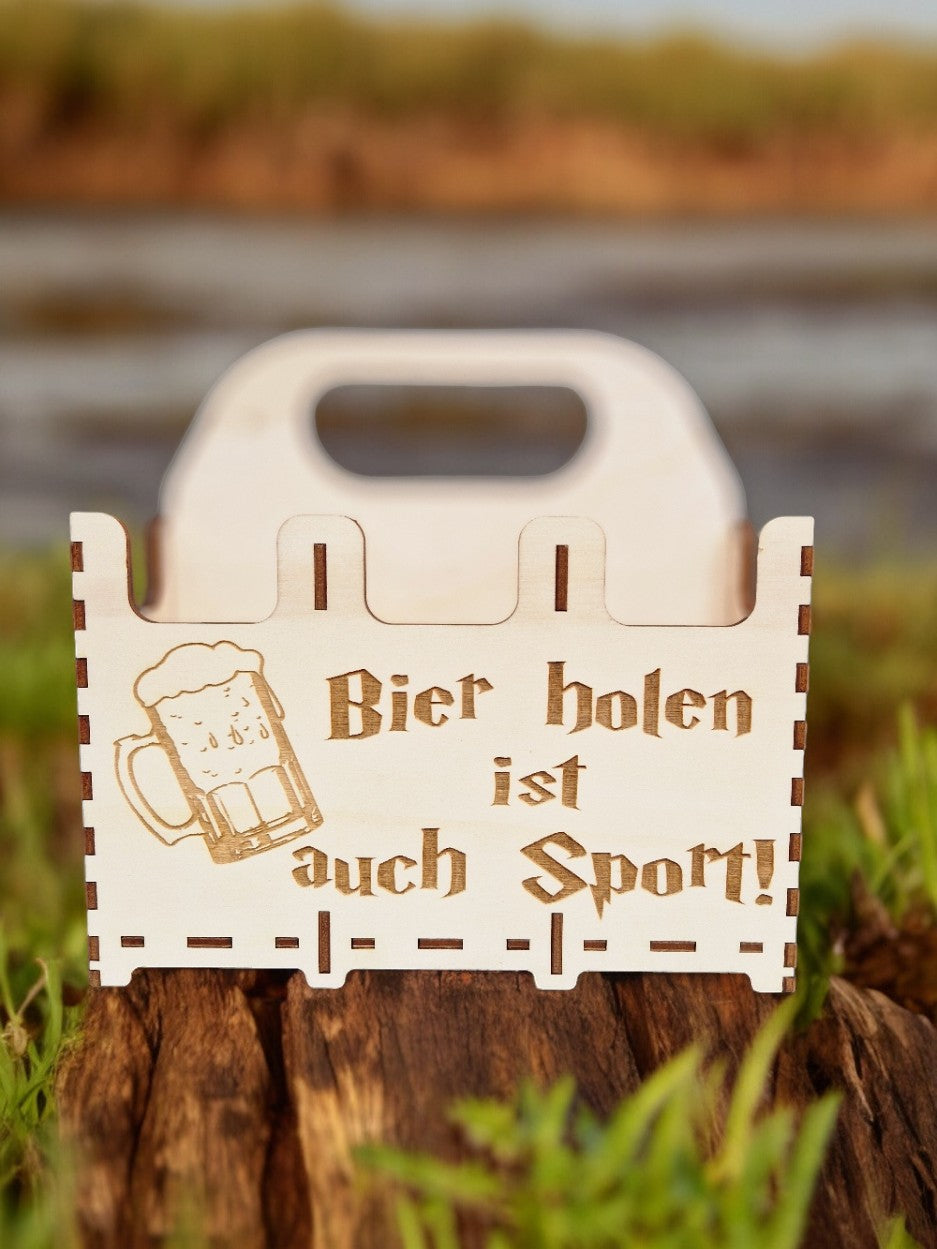 Ihr seit auf der Suche nach einem passendem Geschenk zur Party? dann passt dieser Bier-Sechserträger aus nachhaltigem Pappelholz, bestimmt super.