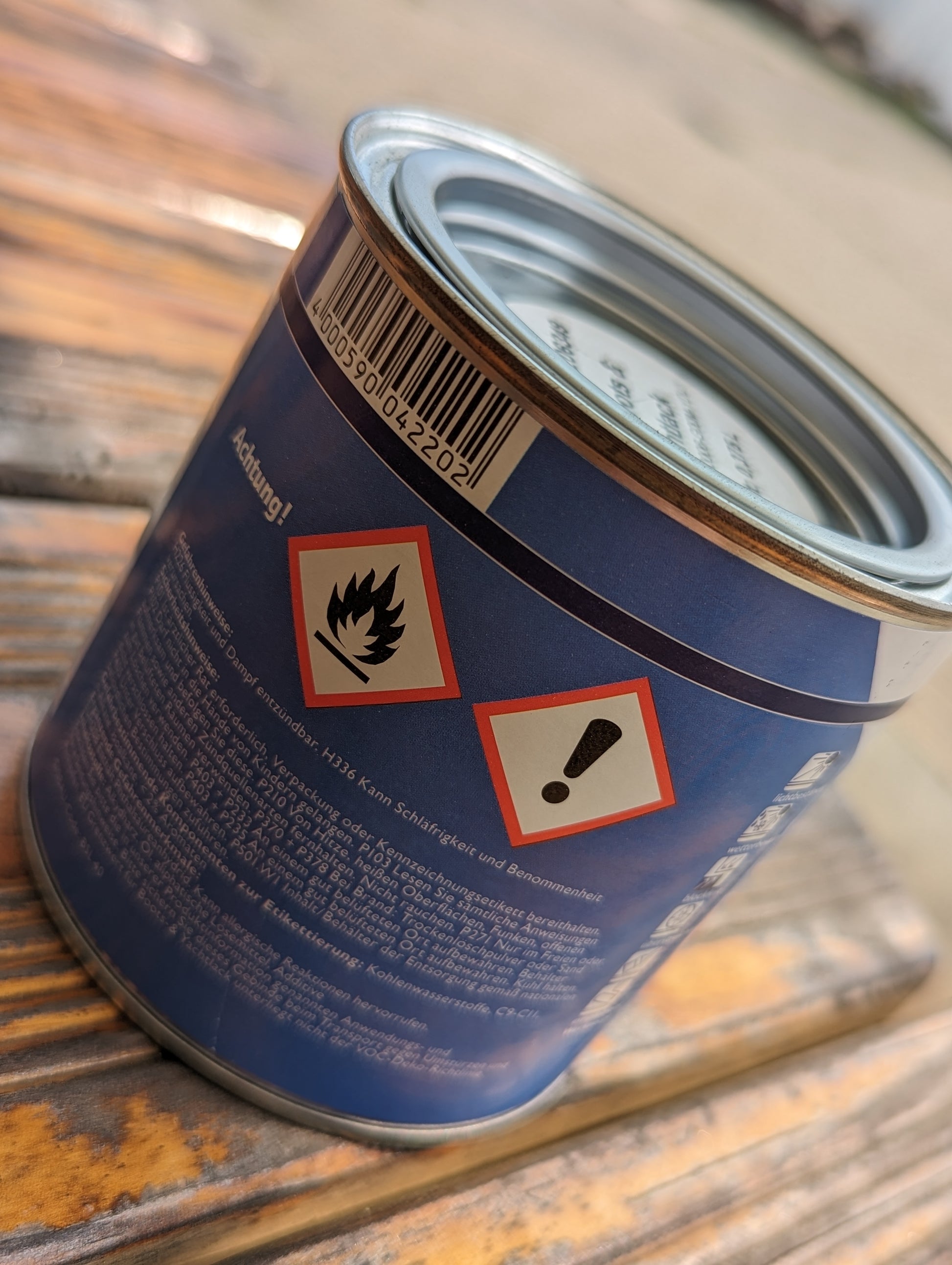 Unsere 0,375-Liter-Dose Bootslack eignet sich perfekt zum Auffrischen deiner Douglasie-Tischplatte. Wir empfehlen eine jährliche Lackauffrischung, und dafür bieten wir genau den Lack an, den wir selbst verwenden. Mit dieser Menge kannst du eine komplette Anstrich-Runde durchführen.
