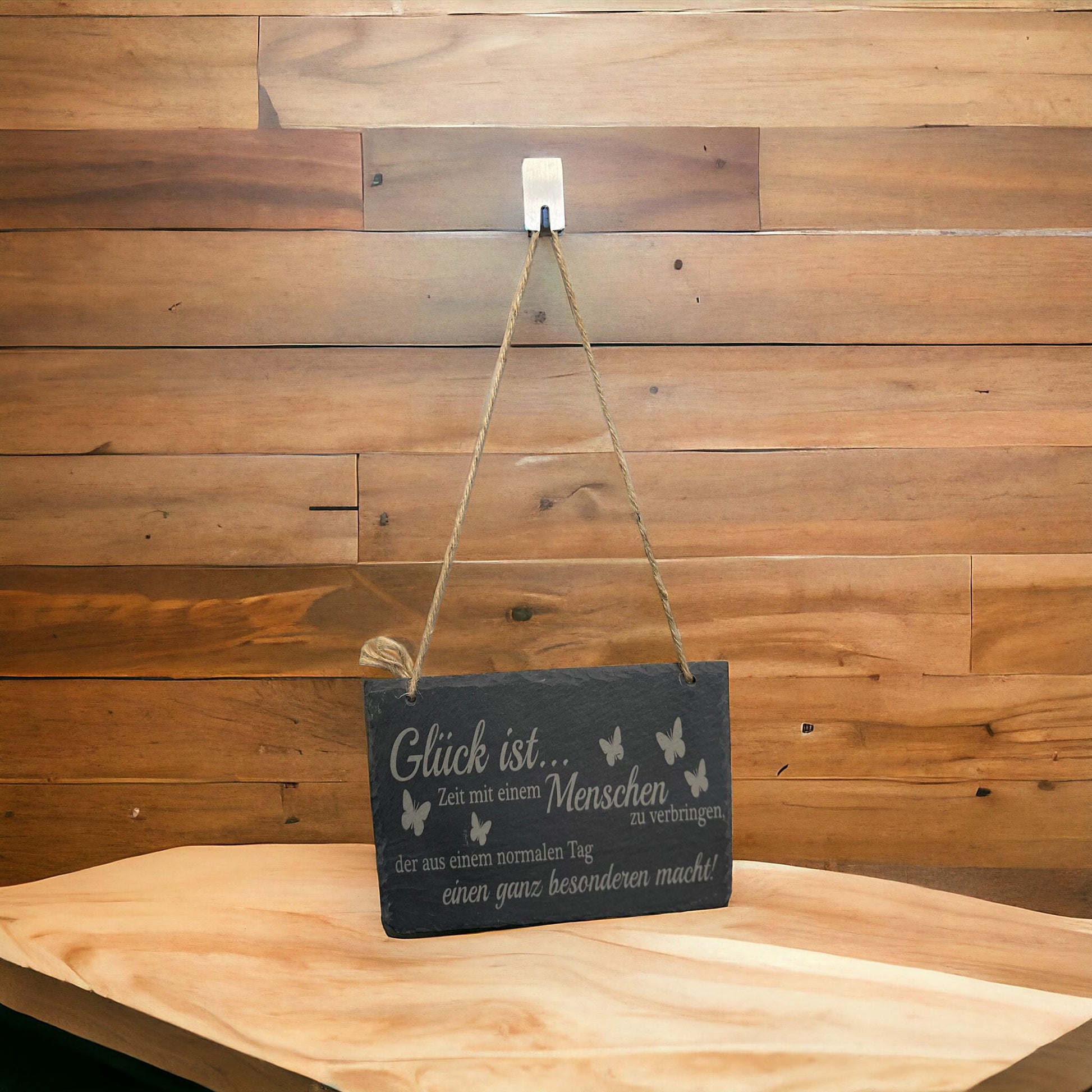 Das Schieferschild mit Spruch zum Aufhängen ist das perfekte Accessoire für jeden Haushalt! Diese wunderschöne Schieferplatte ist in einem eleganten Schwarz gehalten und hat die perfekte Größe von 22cm x 16cm, um an jeder Wand aufgehängt zu werden.