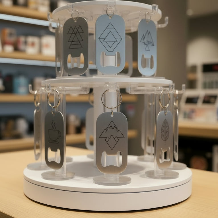 Praktisch, robust und individuell: Dieser Flaschenöffner aus Edelstahl ist gleichzeitig ein Schlüsselanhänger – ideal für unterwegs. Dank der Materialstärke von 1,8 mm ist er besonders stabil und langlebig.