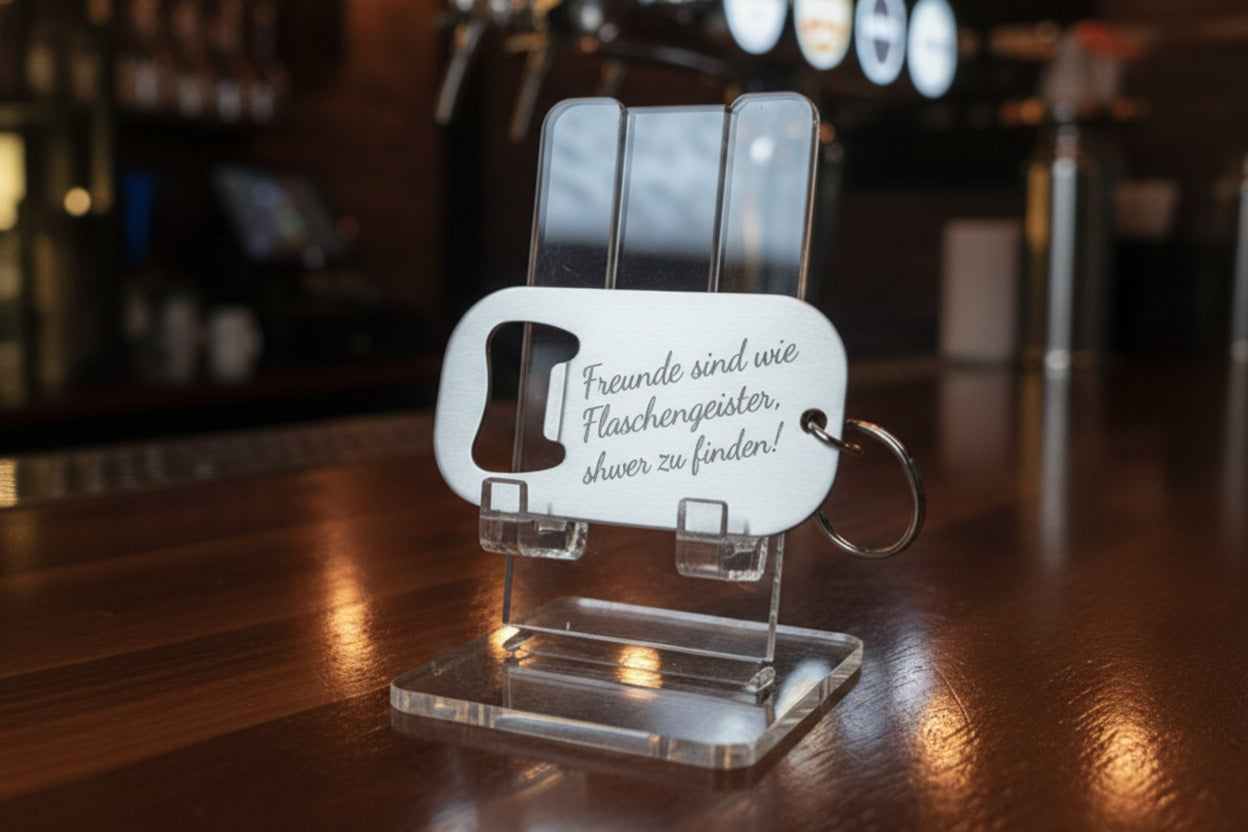 Edelstahl Flaschenöffner Schlüsselanhänger – personalisierbar