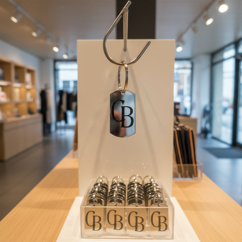 Praktisch, robust und individuell: Dieser Schlüsselanhänger aus Edelstahl ist ideal für unterwegs. Dank der Materialstärke von 1,8 mm ist er besonders stabil und langlebig.