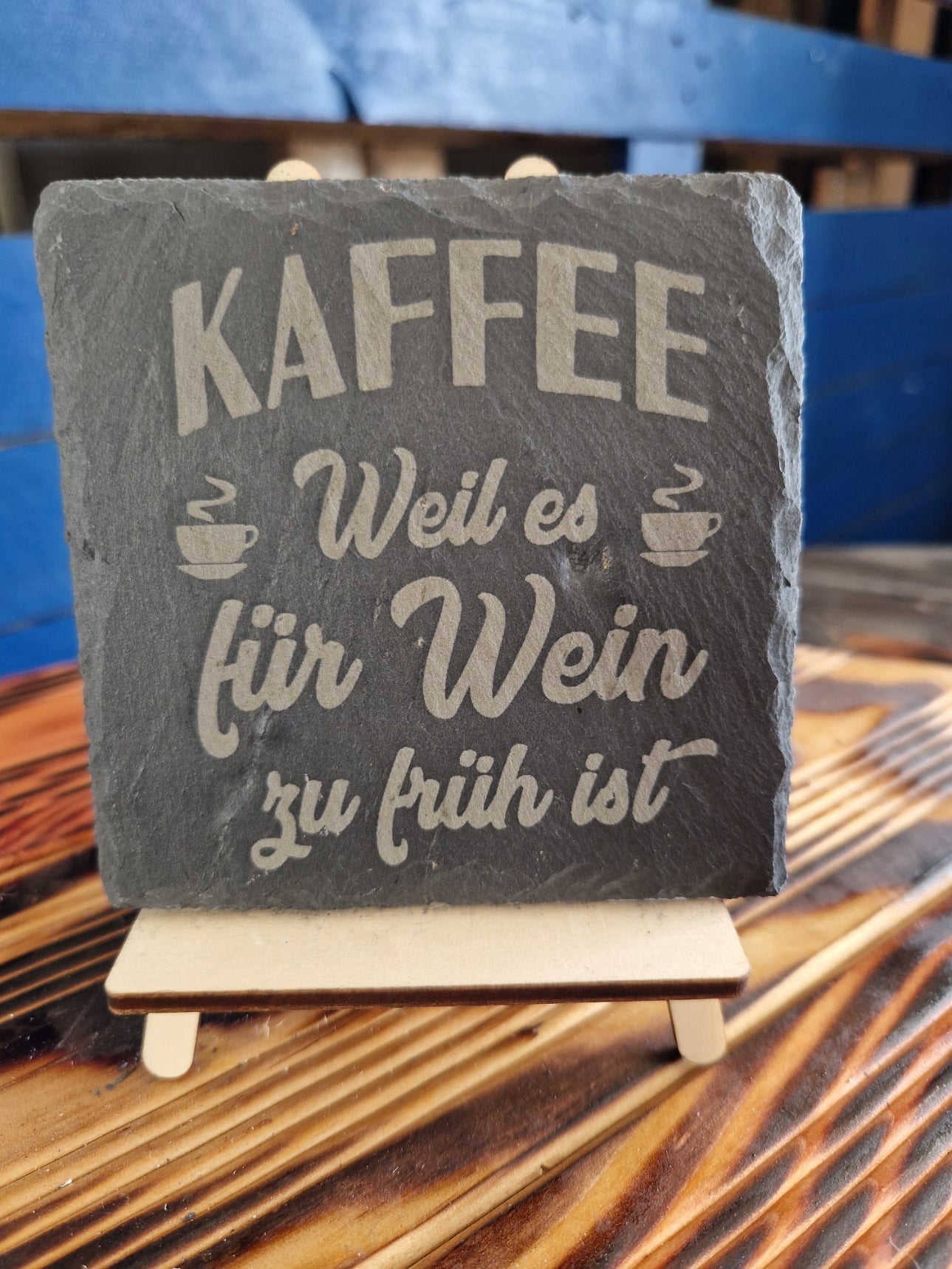 Schiefer Untersetzer " Kaffee - Weil es für Wein zu früh ist"