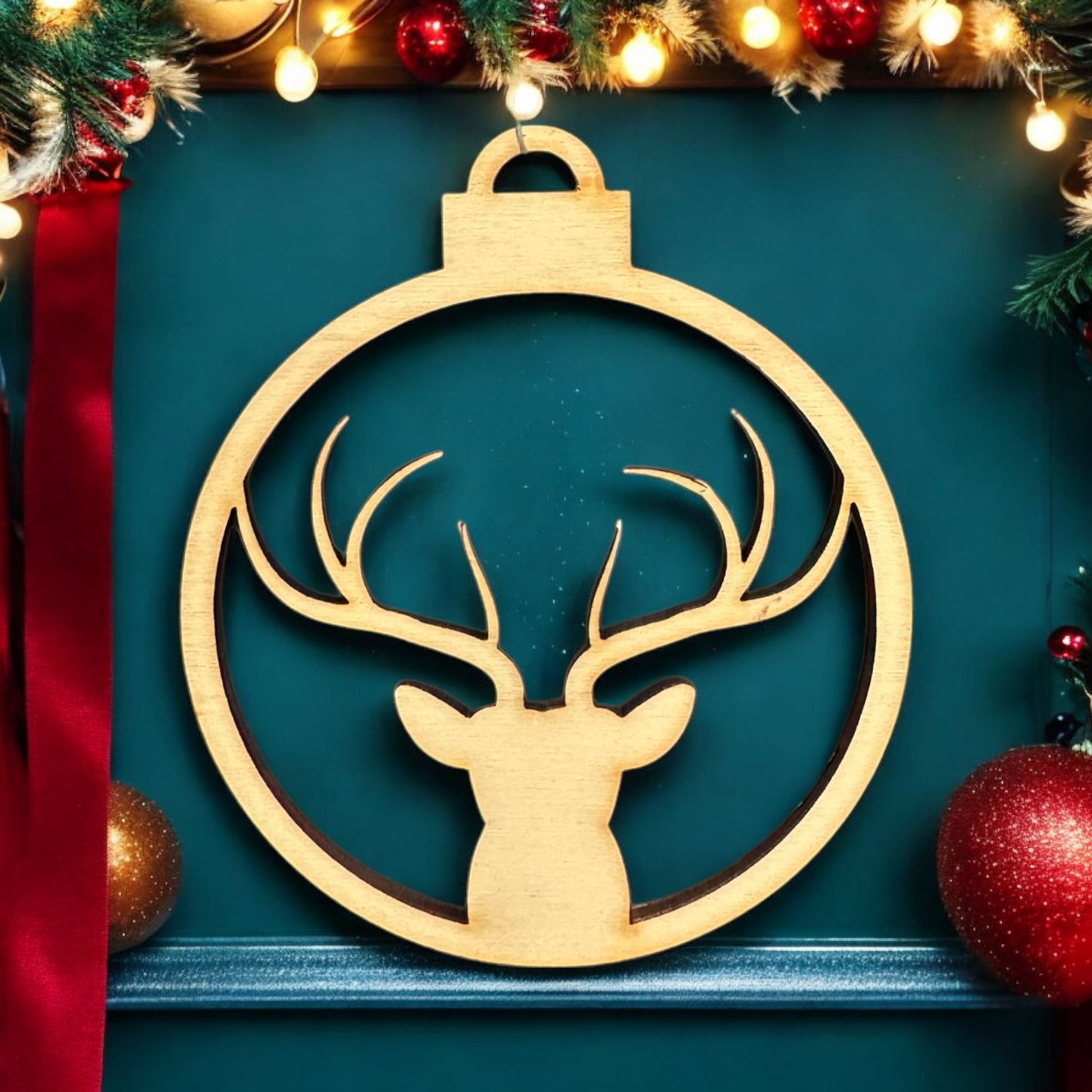 Nachhaltige Weihnachtskugeln aus Pappelholz Motiv 13 Hirschkopf