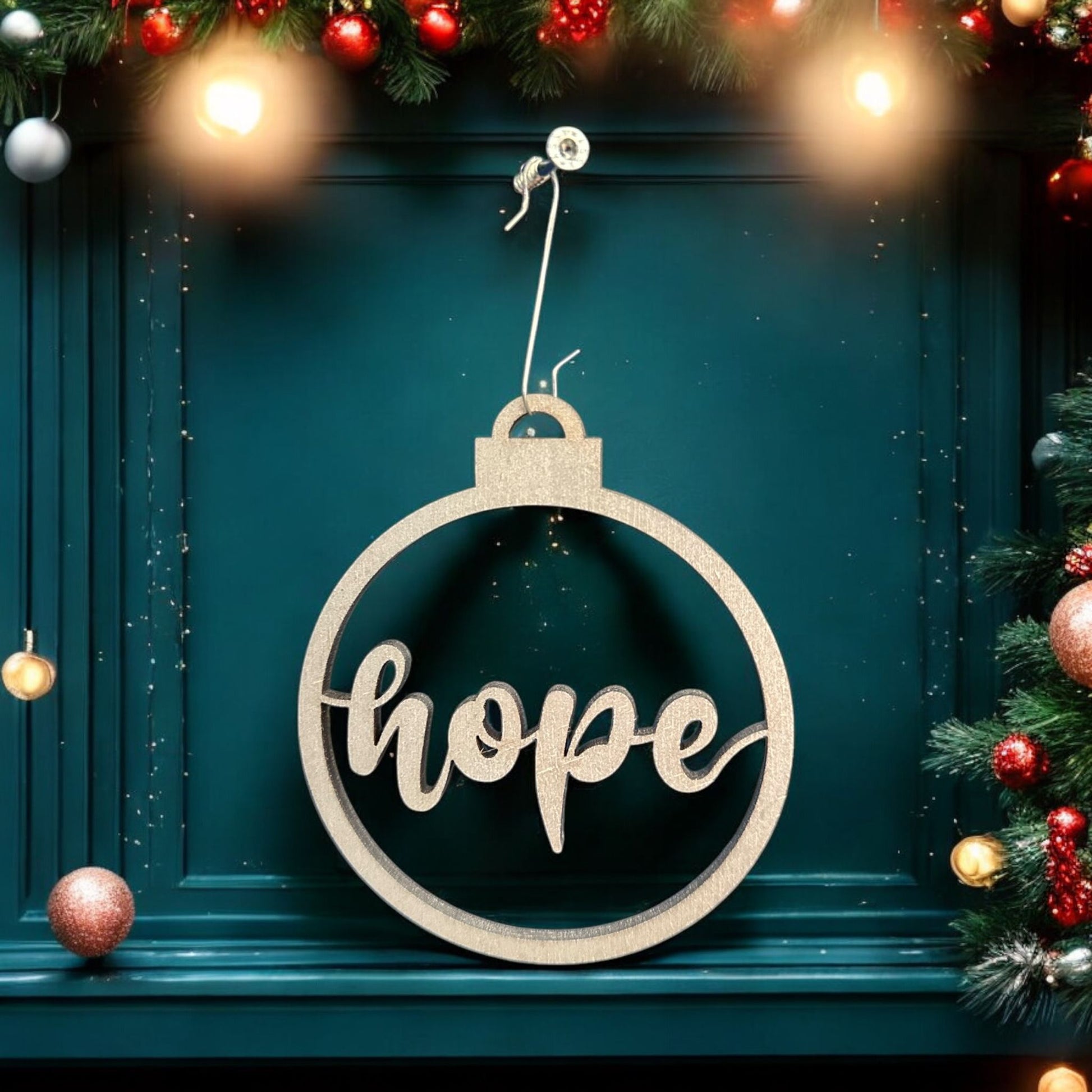 Nachhaltige Weihnachtskugeln aus Pappelholz Motiv 14 hope