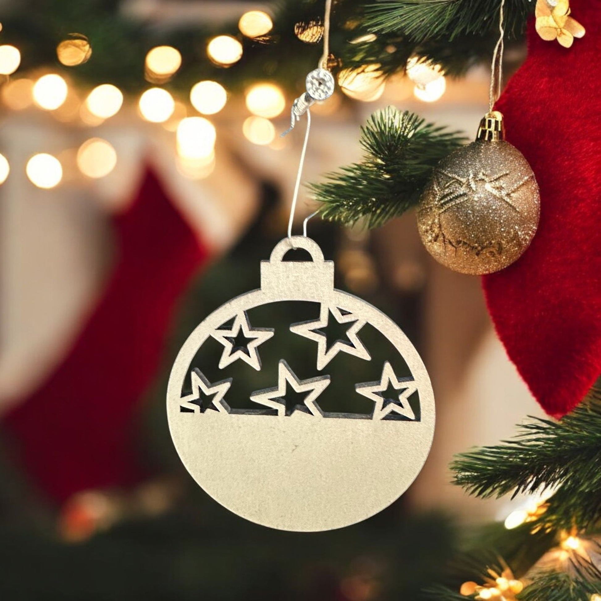 Diese wunderschönen Weihnachtskugeln aus 4 mm starkem Pappelholz sind die perfekte Ergänzung für Eure Weihnachtsdekoration. Nachhaltig gefertigt, vereinen sie natürlichen Charme mit edler Eleganz. Erhältlich in den Farben Natur, Silber und Gold, setzen sie dezente, aber festliche Akzente.