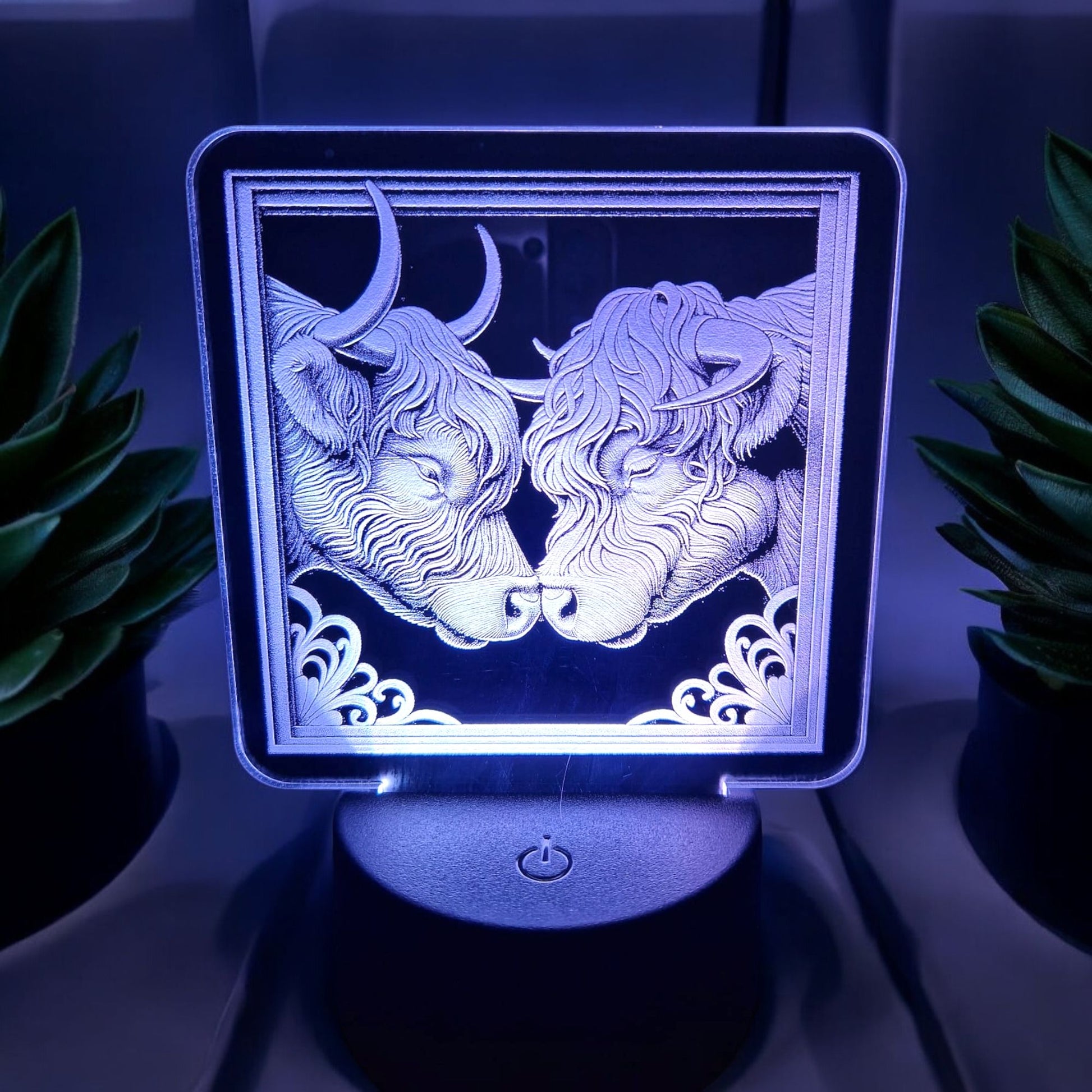 Nachtlicht Highland Kühe 3D
