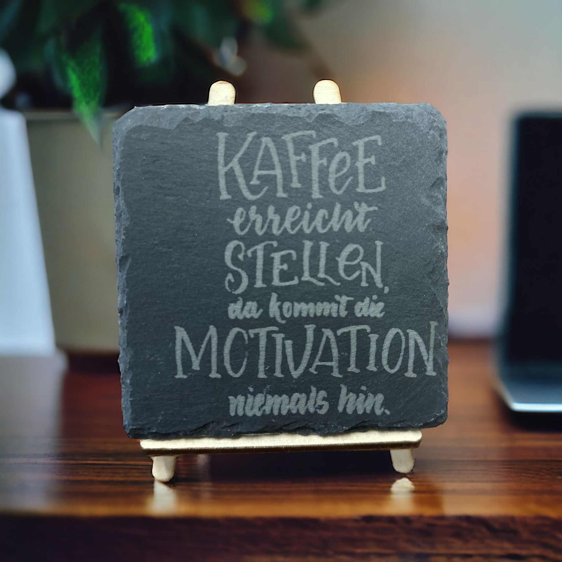 Schieferuntersetzer "Kaffee erreicht stellen, da kommt die Motivation niemals hin."