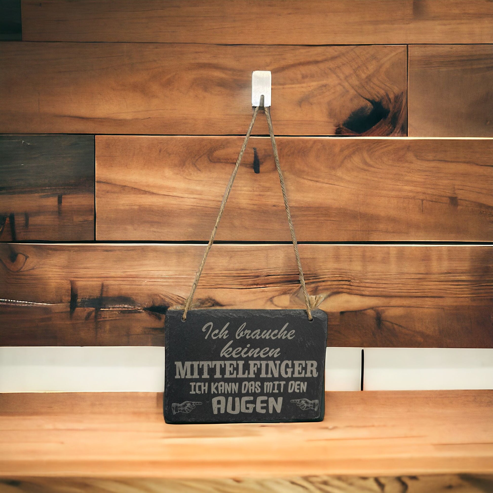 Schiefer-Schild Eckig " Ich brauche keinen Mittelfinger, ich kann das mit den Augen "