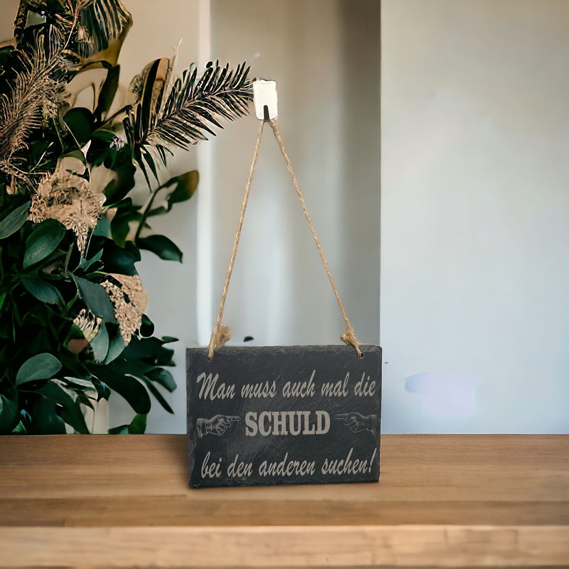 Schiefer-Schild Eckig " Man muss auch mal die Schuld bei den anderen suchen! "