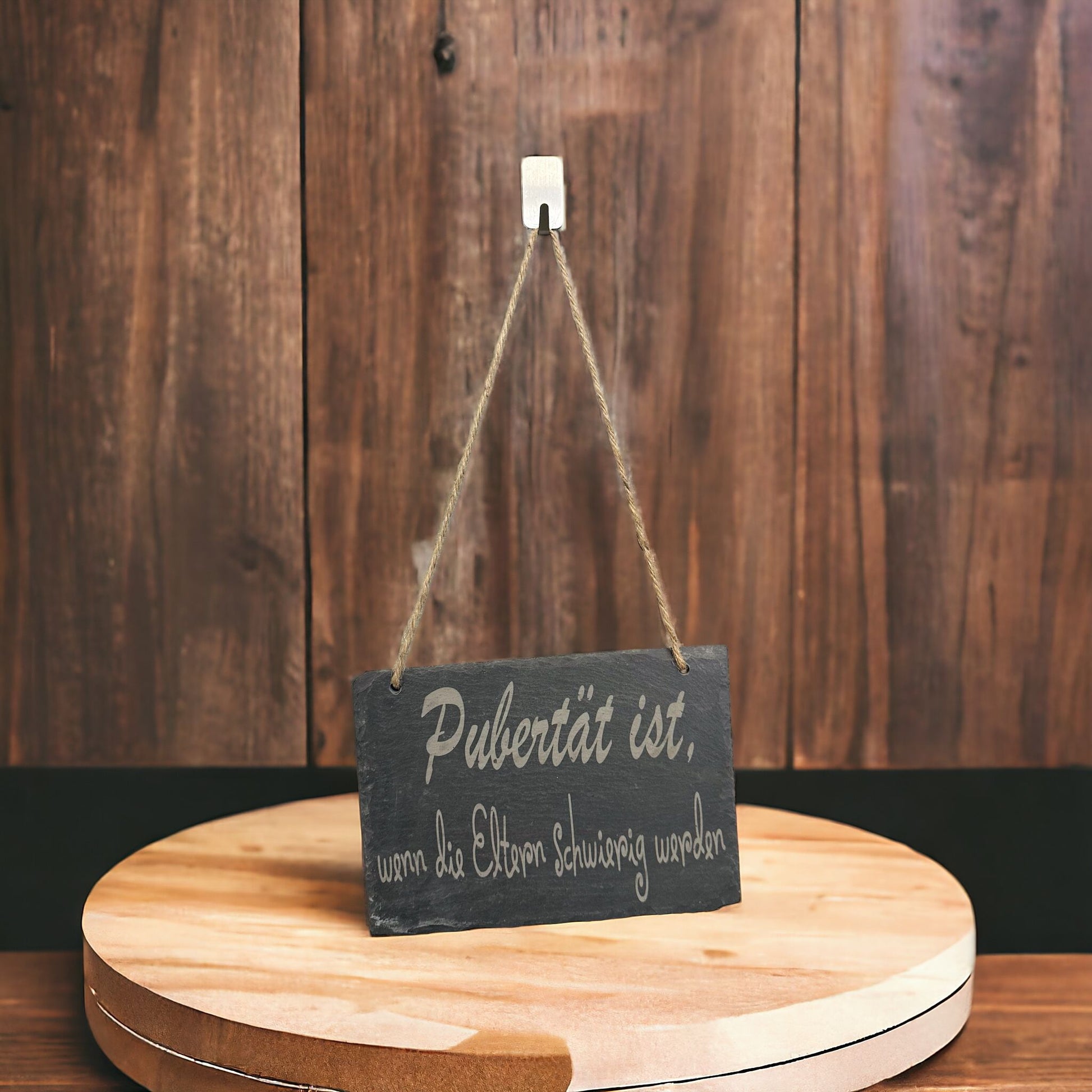 Schiefer-Schild Eckig " Pubertät ist, wenn die Eltern schwierig werden"