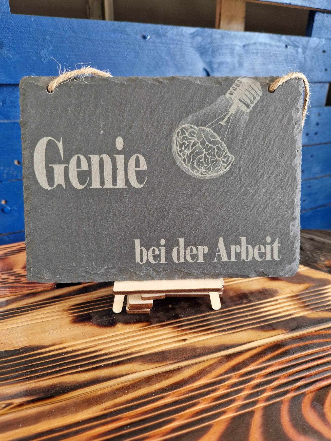 Schiefer-Schild Eckig " Genie bei der Arbeit "
