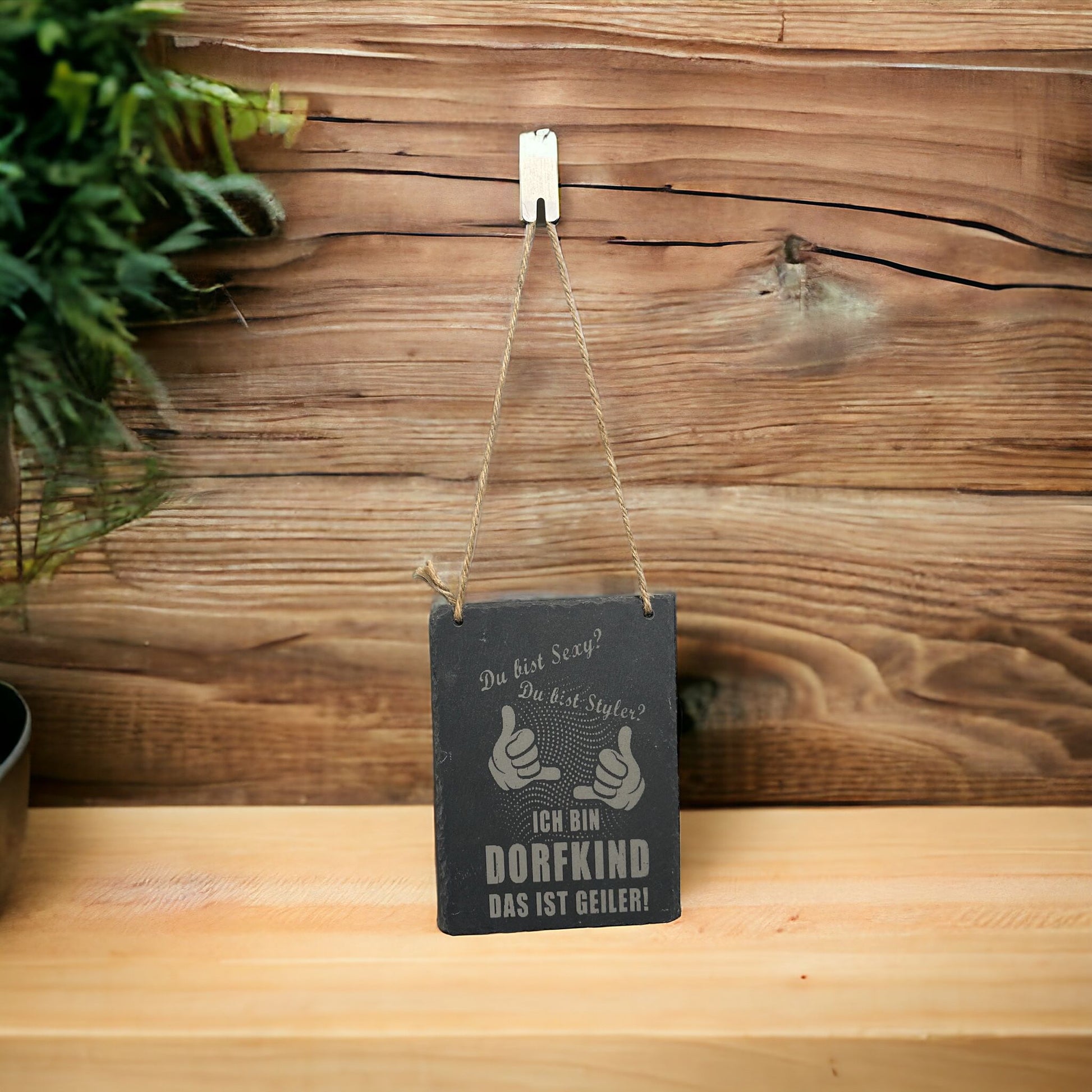 Schiefer-Schild Eckig " Du Bist Sexy? Du bist Styler? Ich bin Dorfkind das ist geiler! "