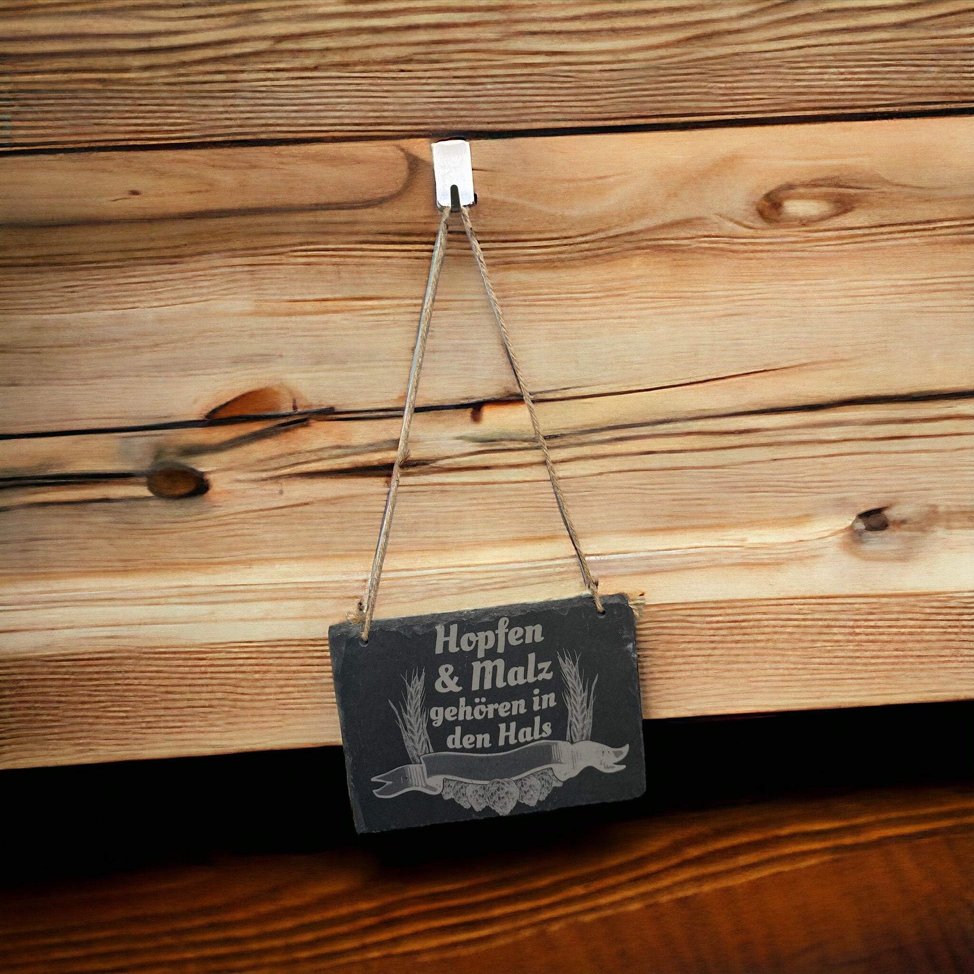Schiefer-Schild Eckig " Hopfen und Malz gehören in den Hals"