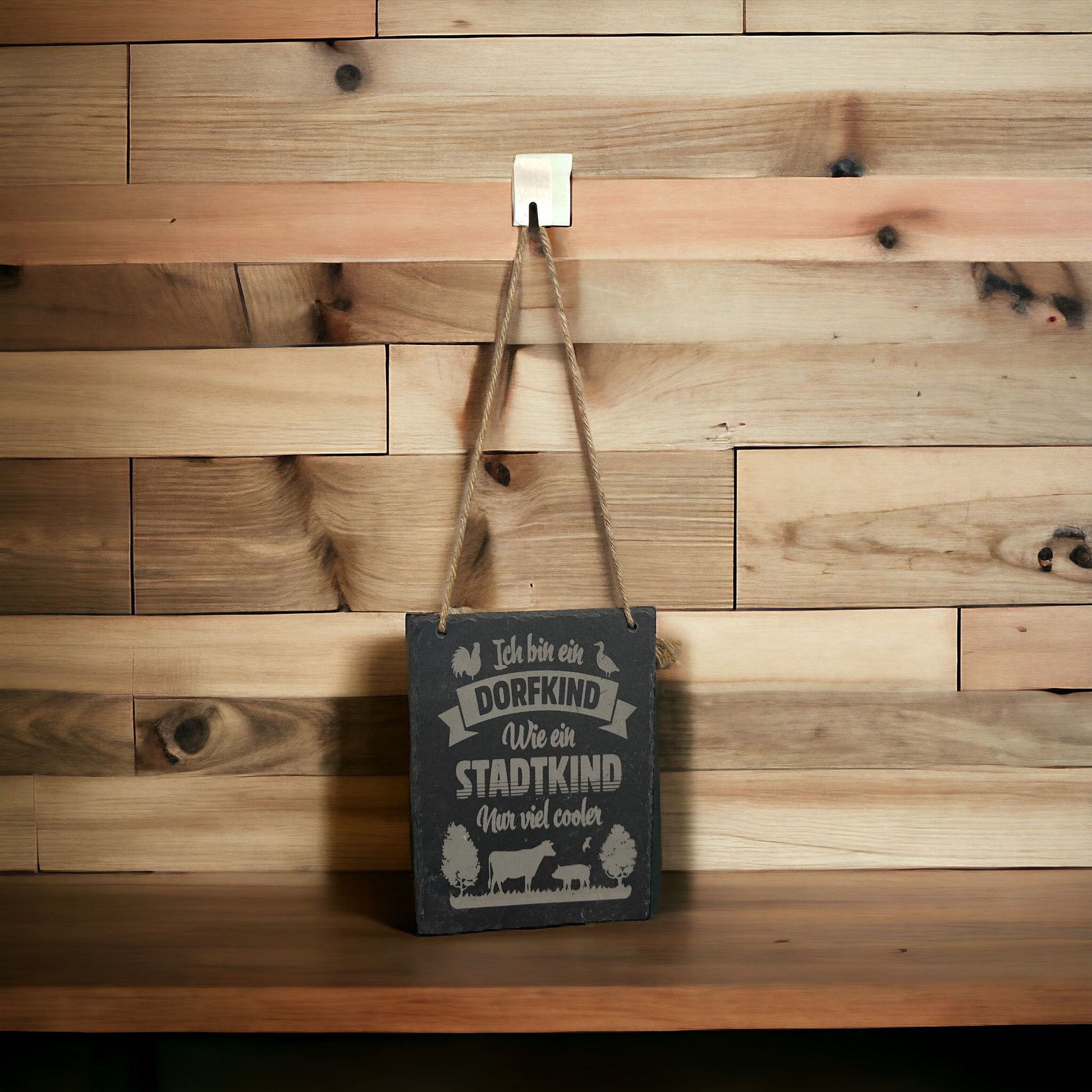 Schiefer-Schild Eckig " Ich bin ein Dorfkind, wie ein Stadtkind nur viel cooler"