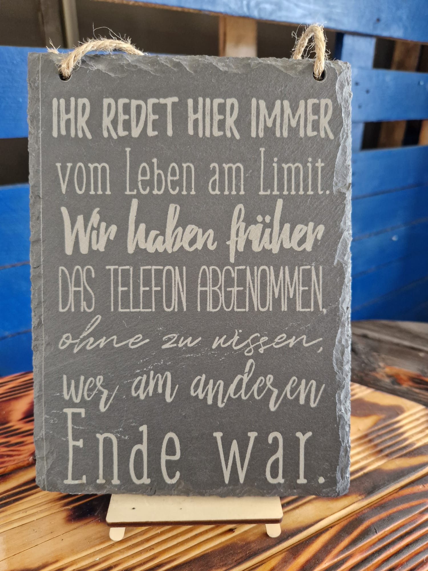 Bestellen Sie jetzt das Schieferschild mit Spruch zum Aufhängen und verleihen Sie Ihrem Zuhause einen Hauch von Humor und Stil!