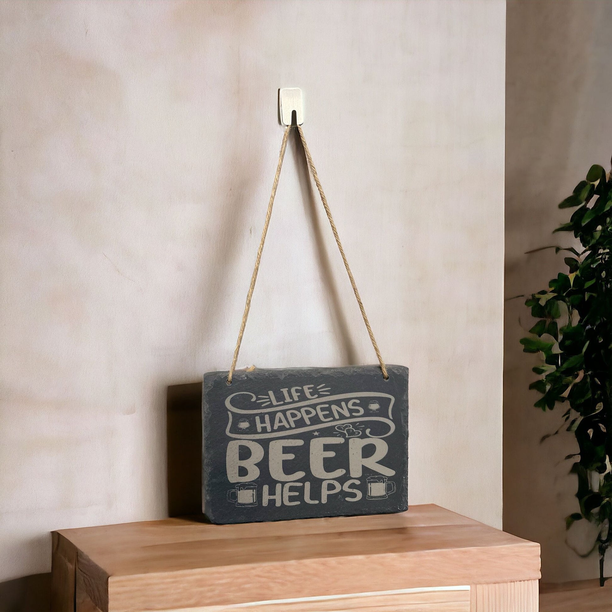 Schiefer-Schild Eckig " Life Happens - Beer Helps "