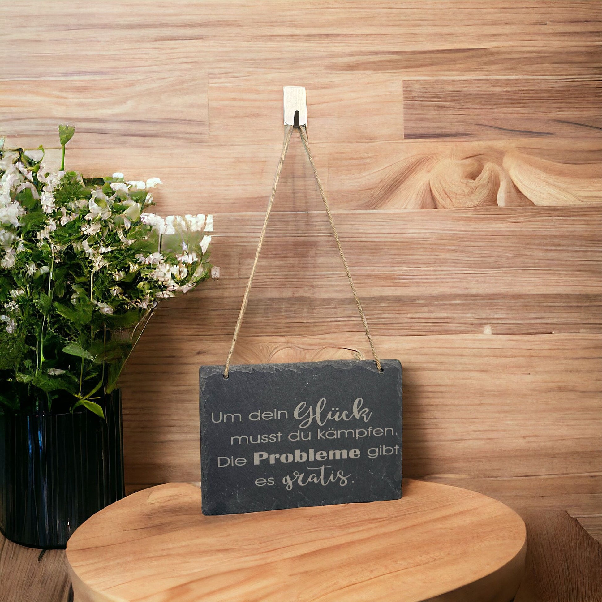 Schiefer-Schild Eckig " Um dein Glück musst du kämpfen. Die Probleme gibt es gratis"