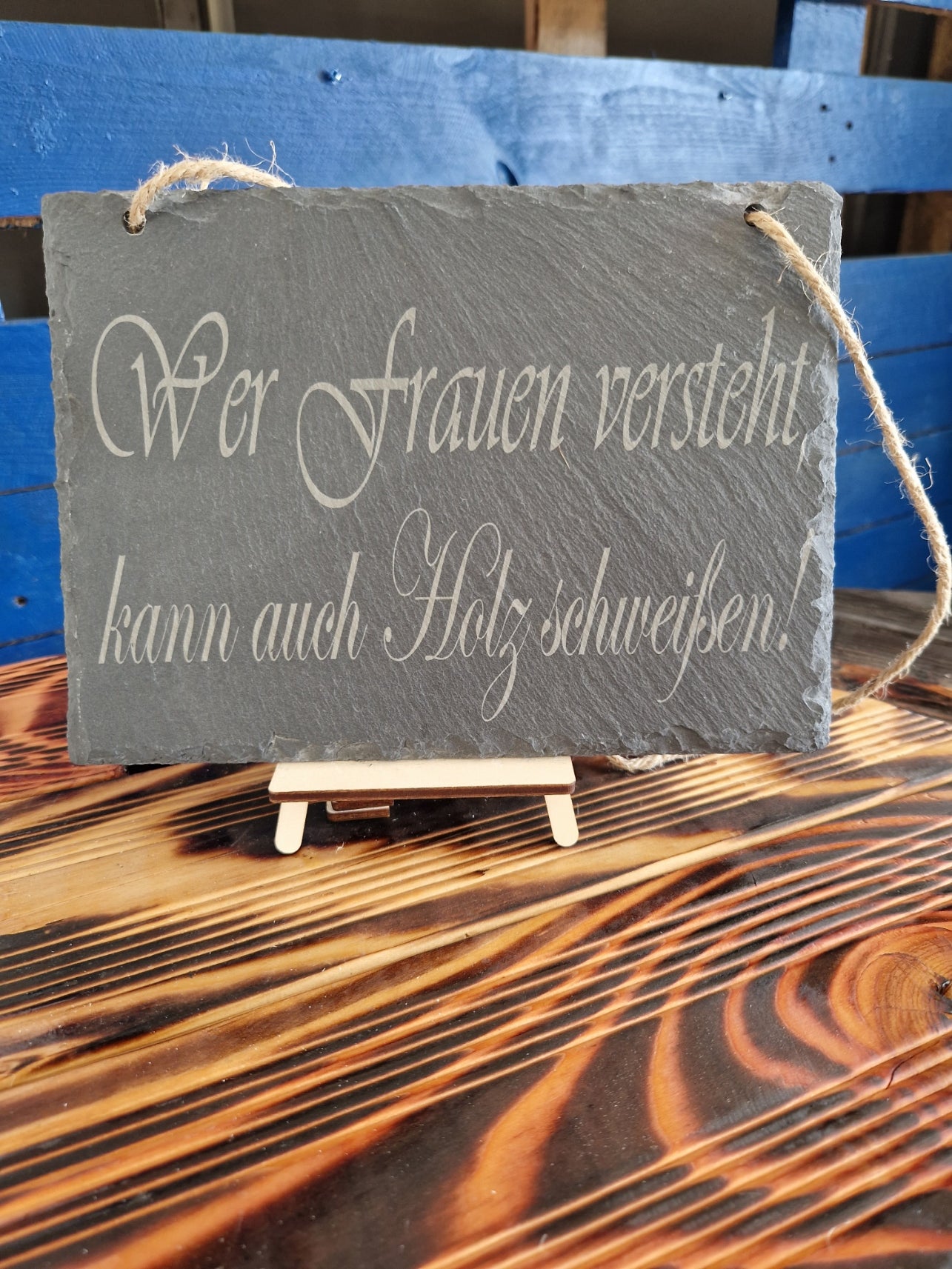 Schiefer-Schild Eckig " Wer Frauen versteht, kann auch Holz schweißen!"