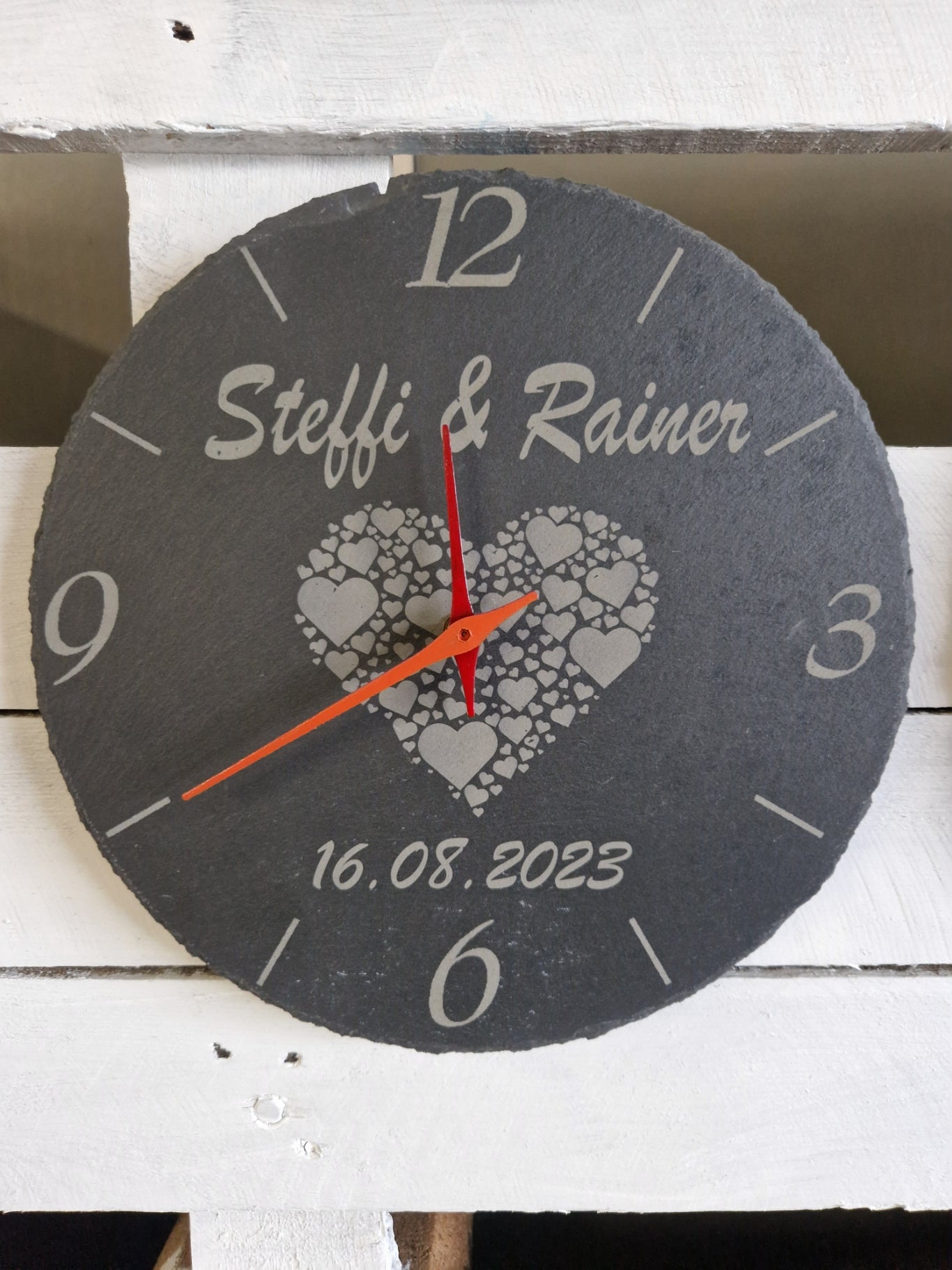 Individuelles Design: Jede Wanduhr wird graviert und erhält dadurch eine persönliche Note.