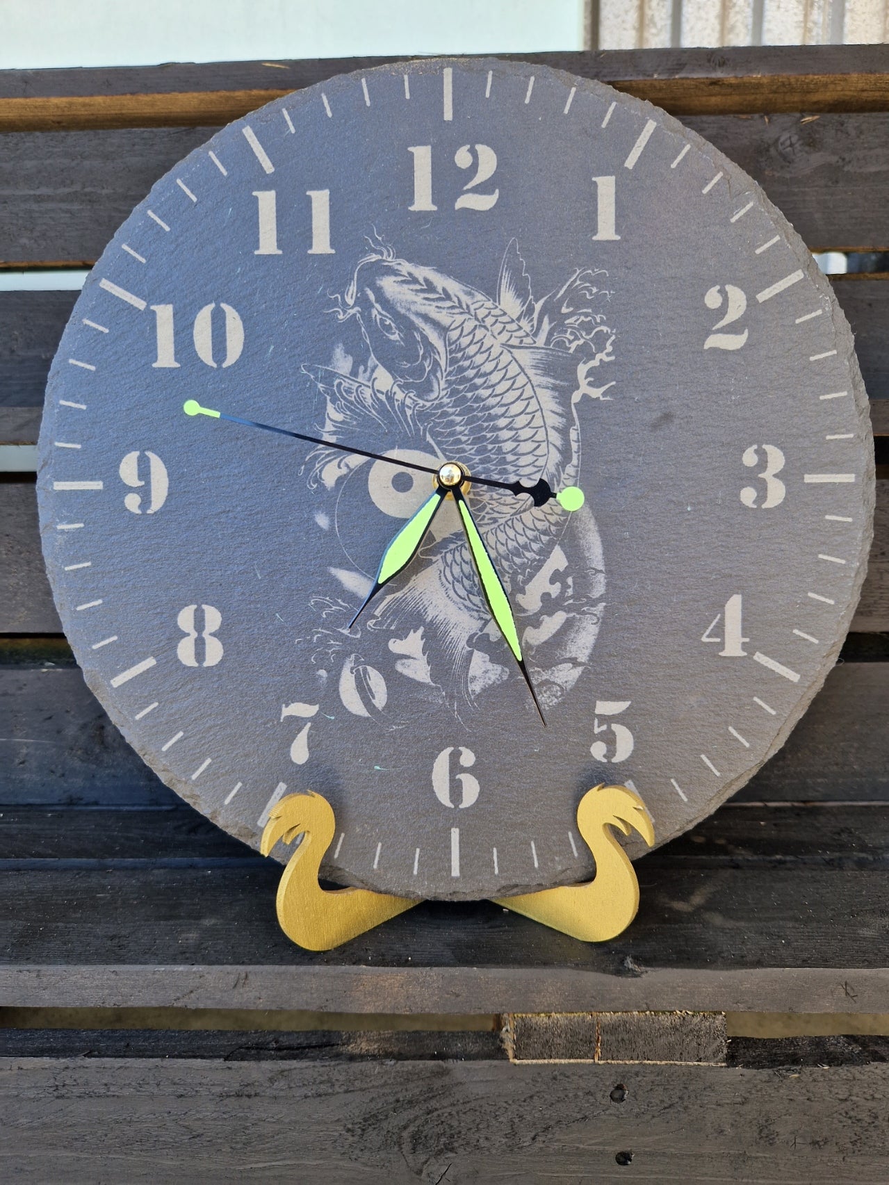 Schiefer Uhr Koi