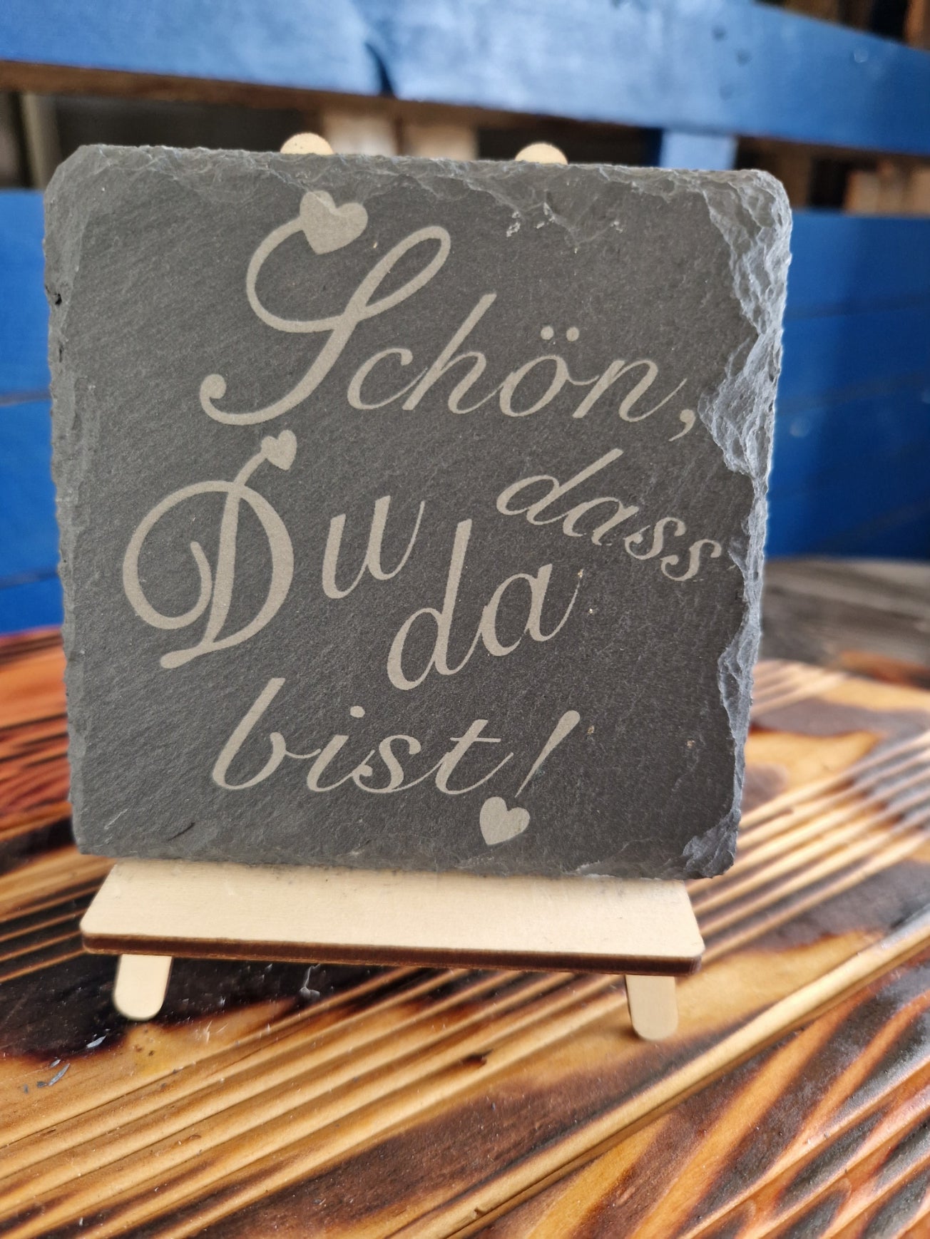 Schiefer Untersetzer " Schön, dass Du da bist"