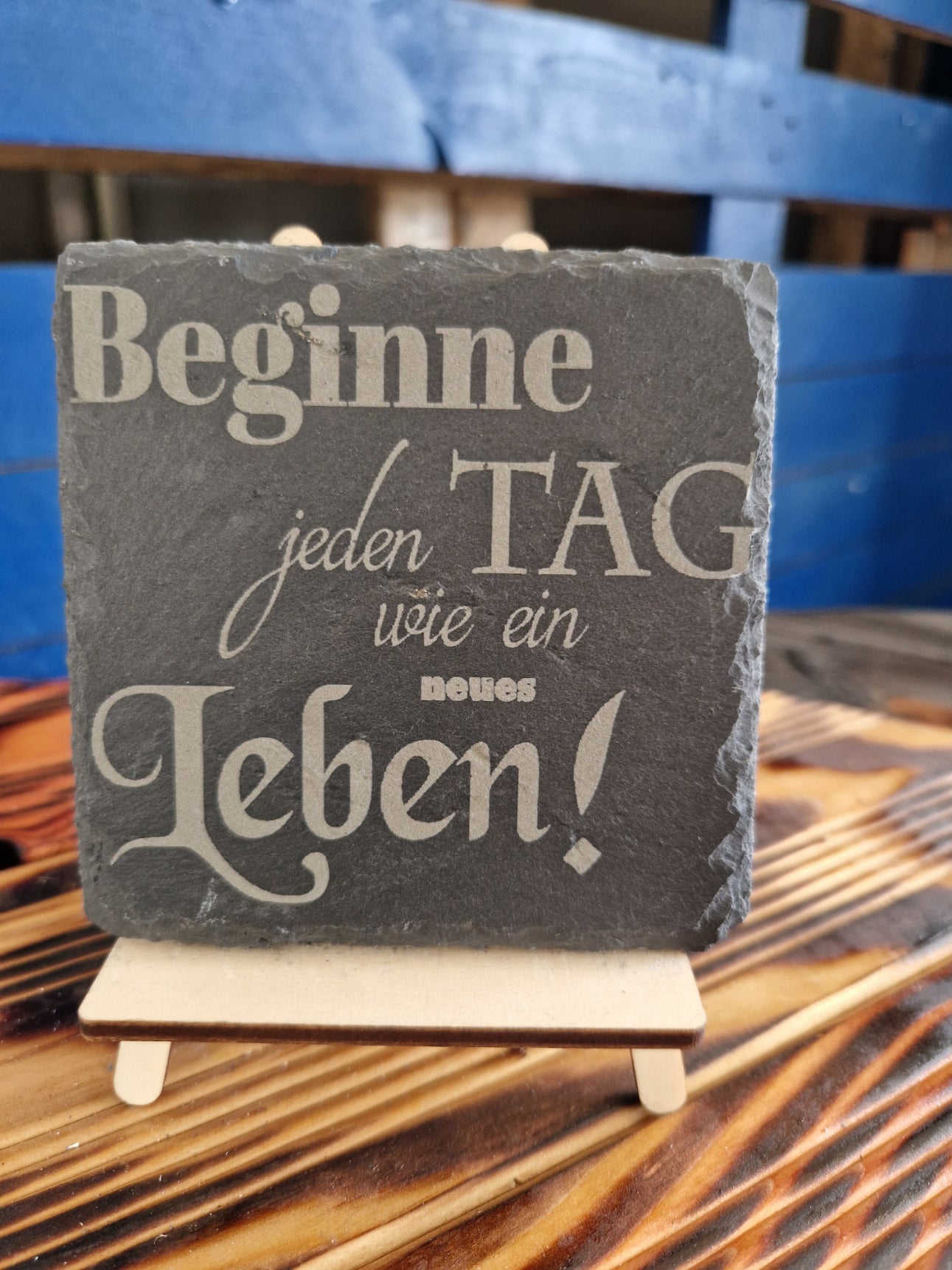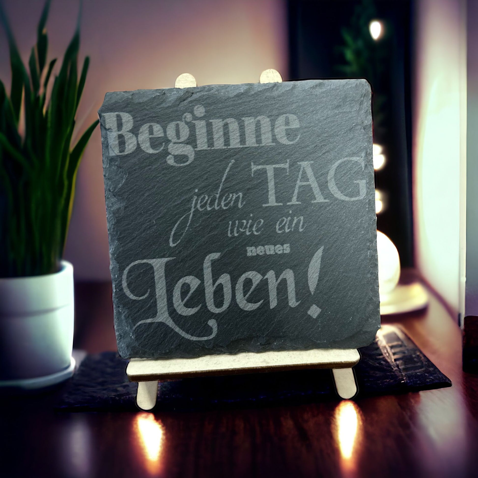 Schiefer Untersetzer "Beginne jeden Tag wie ein neues Leben!"