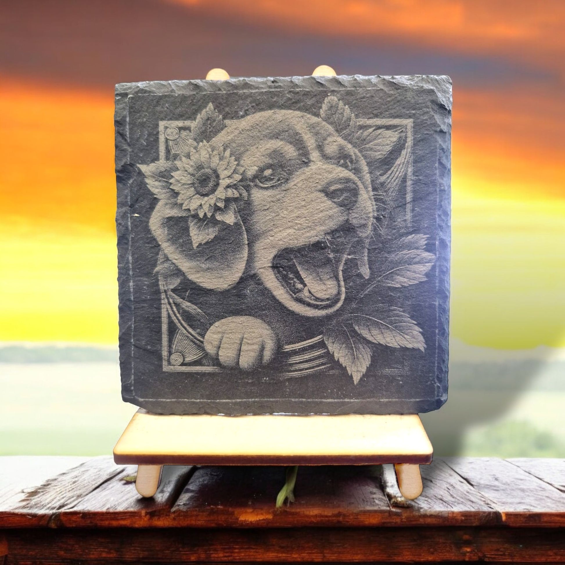 Entdecken Sie die zeitlose Eleganz unserer Schieferplatte mit künstlerischem Motiv. Die natürliche Schönheit des Schiefers verschmilzt perfekt mit dem ausdrucksstarken Design, um eine faszinierende Verbindung zwischen Natur und Kunst zu schaffen. Perfekt als Dekoration oder praktische Unterlage.