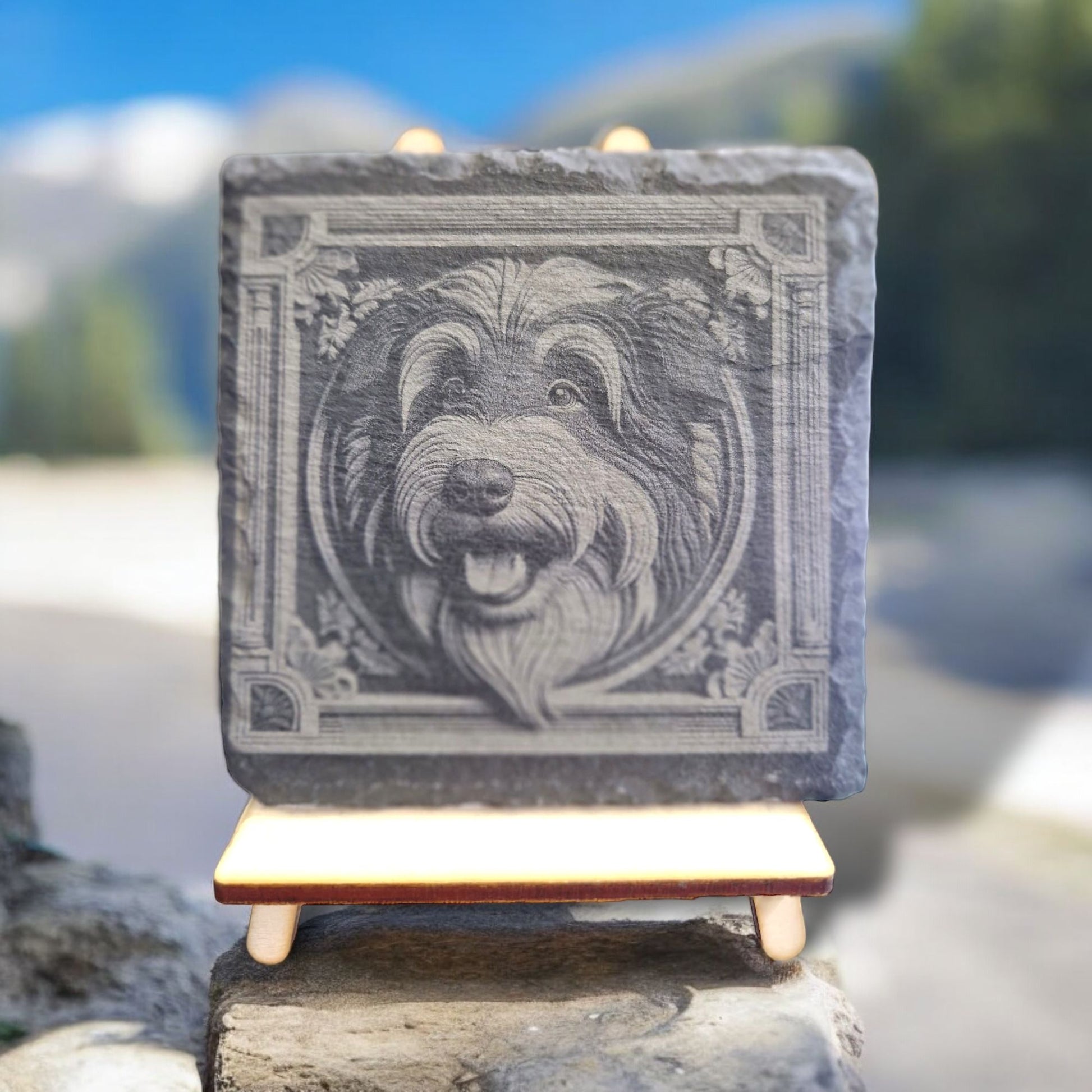 Entdecken Sie die zeitlose Eleganz unserer Schieferplatte mit künstlerischem Motiv. Die natürliche Schönheit des Schiefers verschmilzt perfekt mit dem ausdrucksstarken Design, um eine faszinierende Verbindung zwischen Natur und Kunst zu schaffen. Perfekt als Dekoration oder praktische Unterlage.