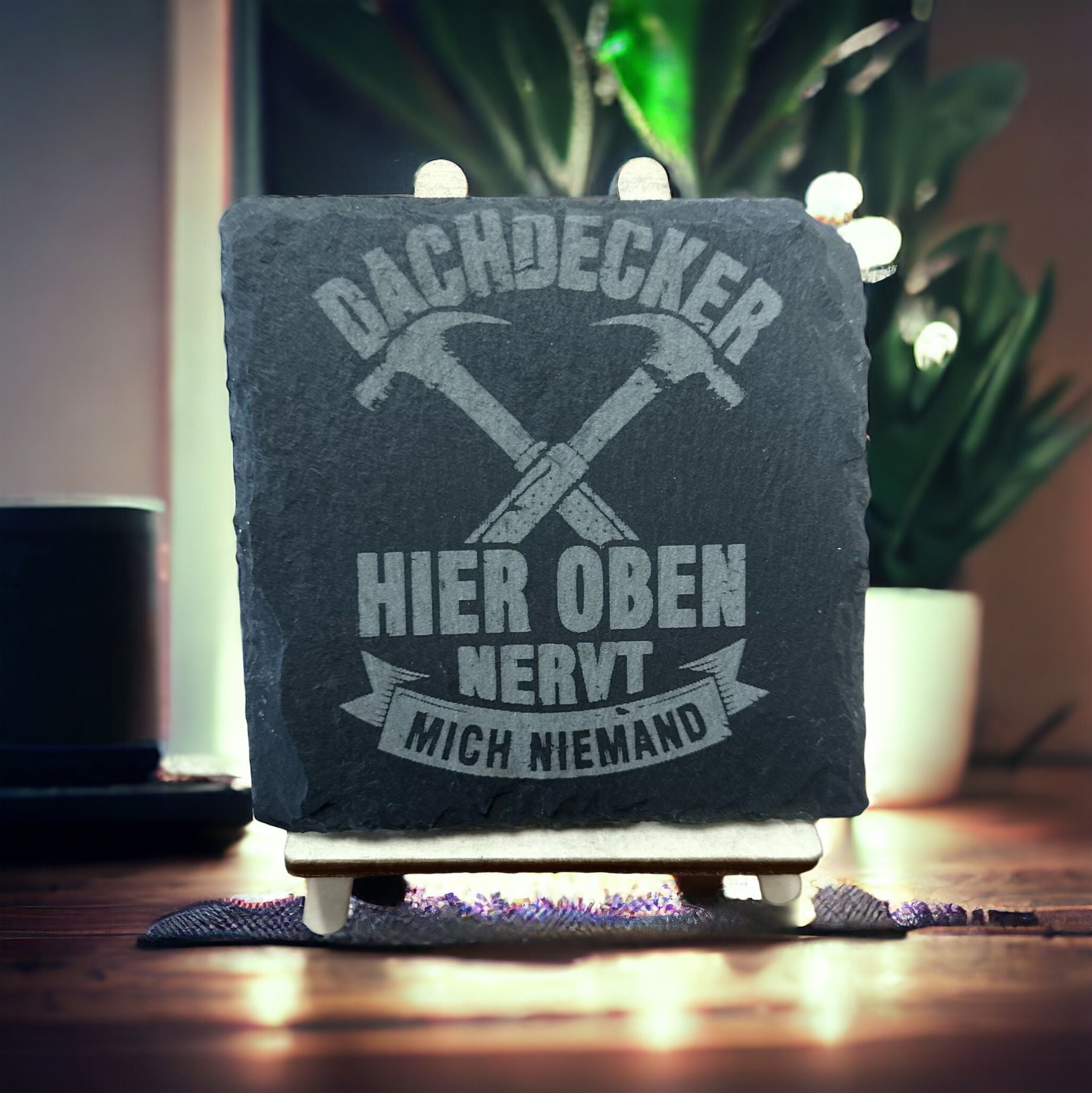 Schiefer Untersetzer "Dachdecker Hier oben nervt mich niemand "