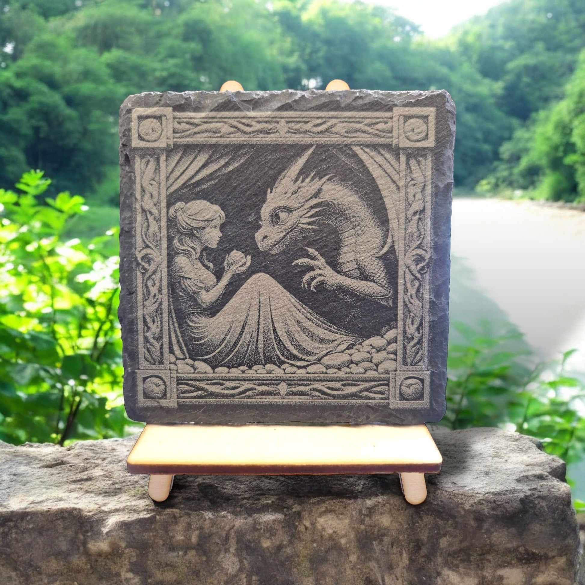 Schiefer Untersetzer Drache und Prinzessin 3D