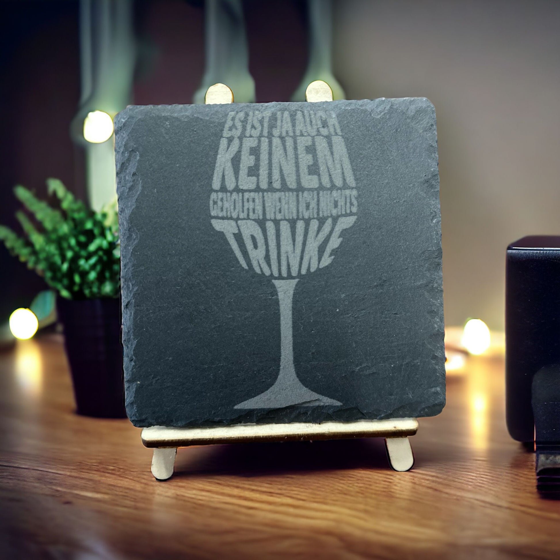 Schiefer Untersetzer " Es ist ja auch keinem geholfen wenn ich nichts trinke "