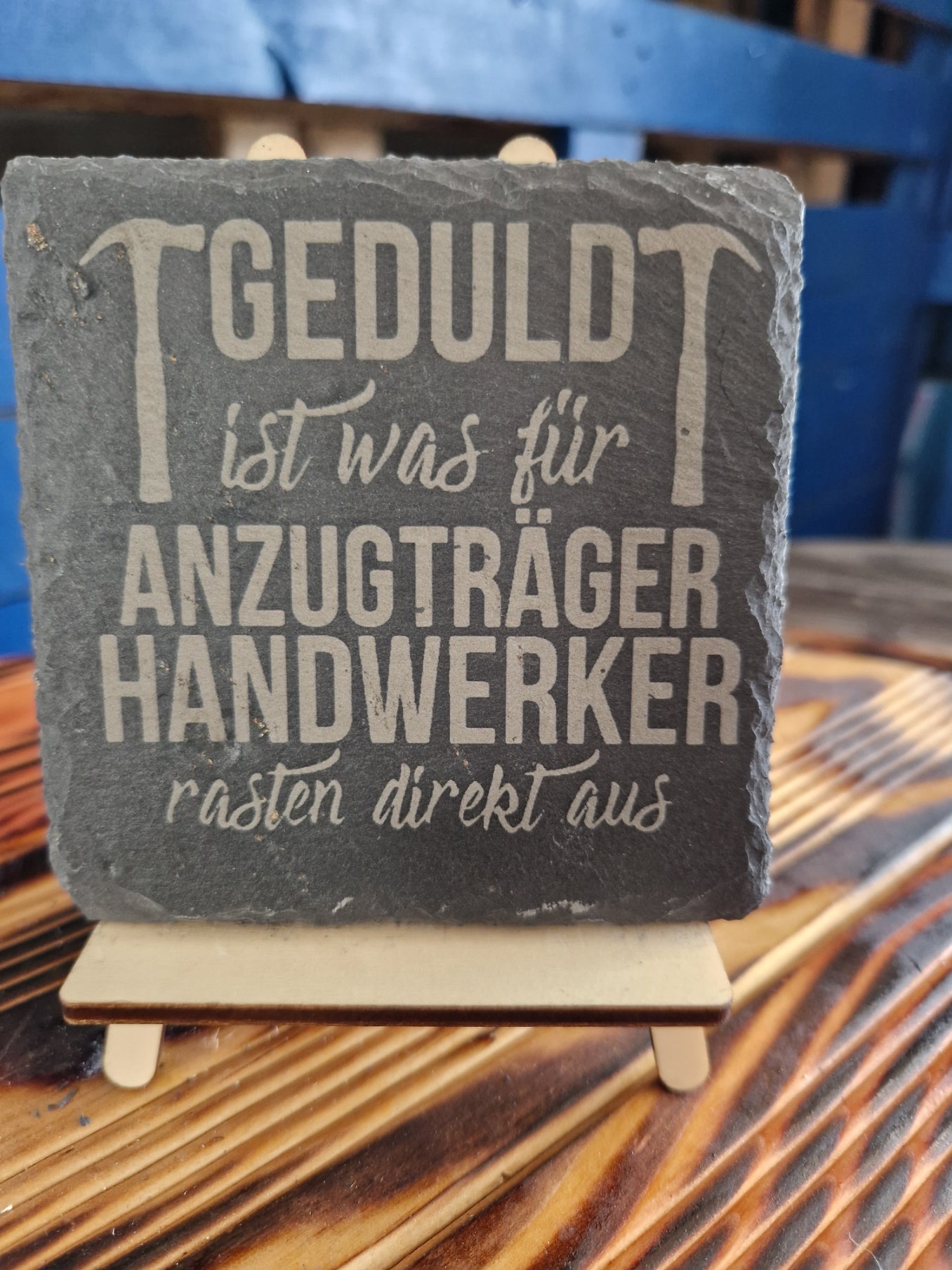 Schiefer Untersetzer "Geduld ist was für Anzugträger Handwerker rasten direkt aus "
