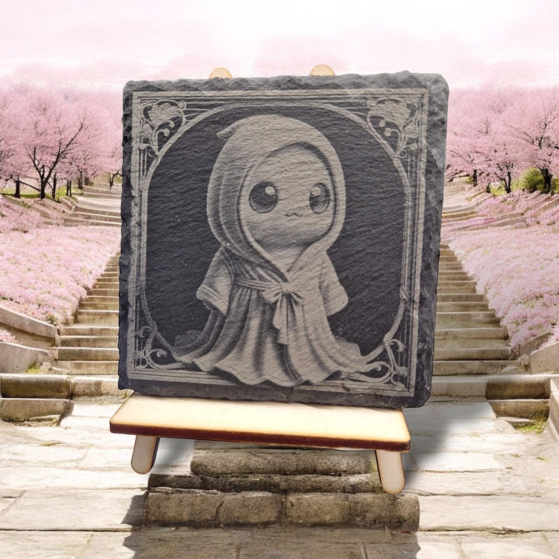 Entdecken Sie die zeitlose Eleganz unserer Schieferplatte mit künstlerischem Motiv. Die natürliche Schönheit des Schiefers verschmilzt perfekt mit dem ausdrucksstarken Design, um eine faszinierende Verbindung zwischen Natur und Kunst zu schaffen. Perfekt als Dekoration oder praktische Unterlage.