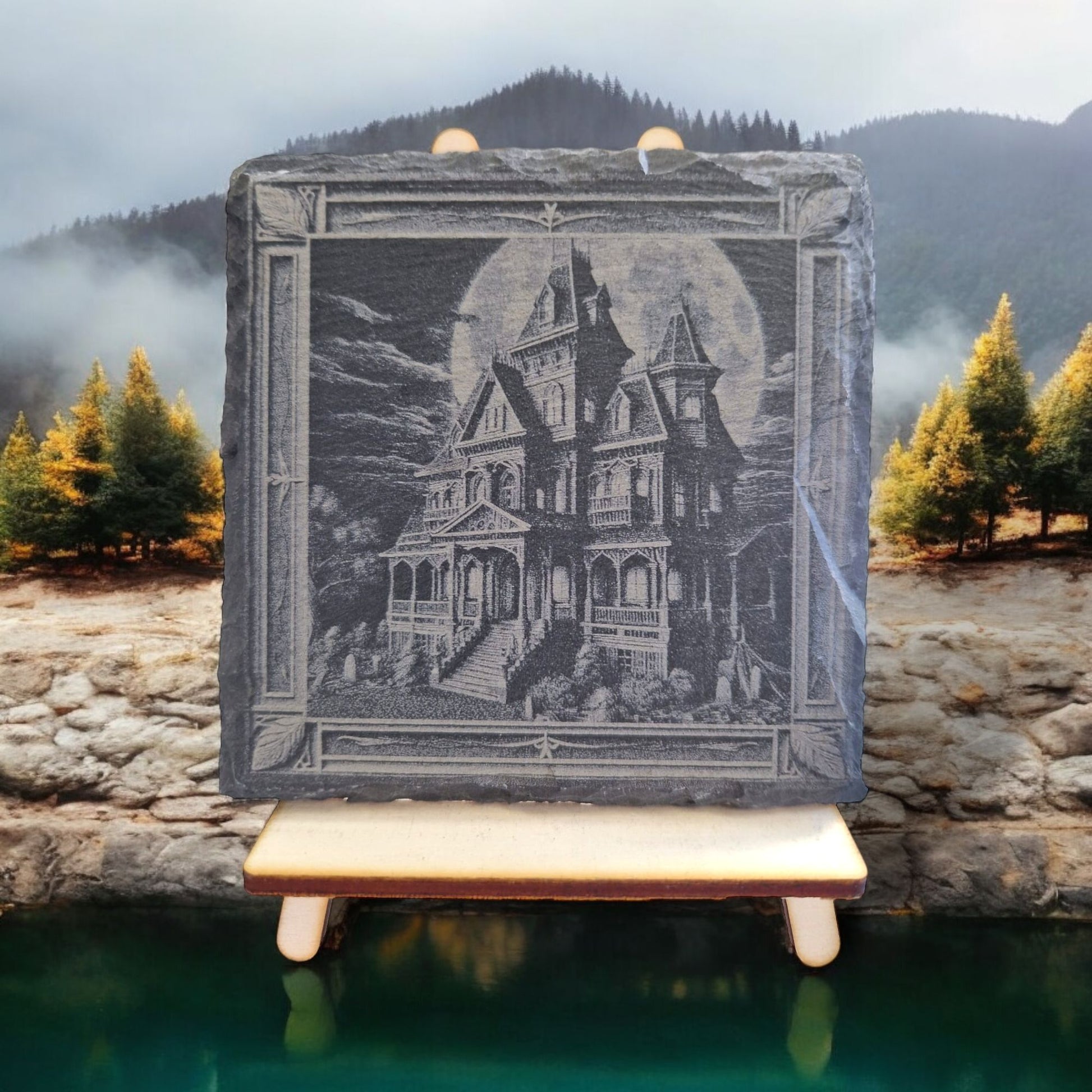 Schiefer Untersetzer Gruselschloß 3D