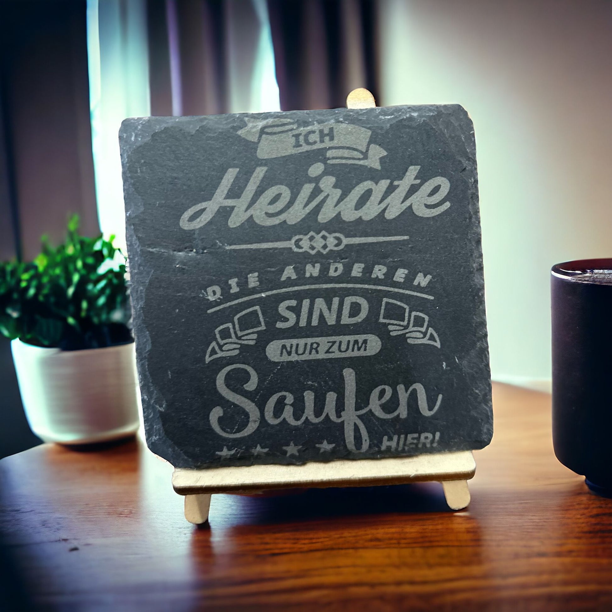 Schiefer Untersetzer " Ich heirate die anderen sind nur zum saufen hier"