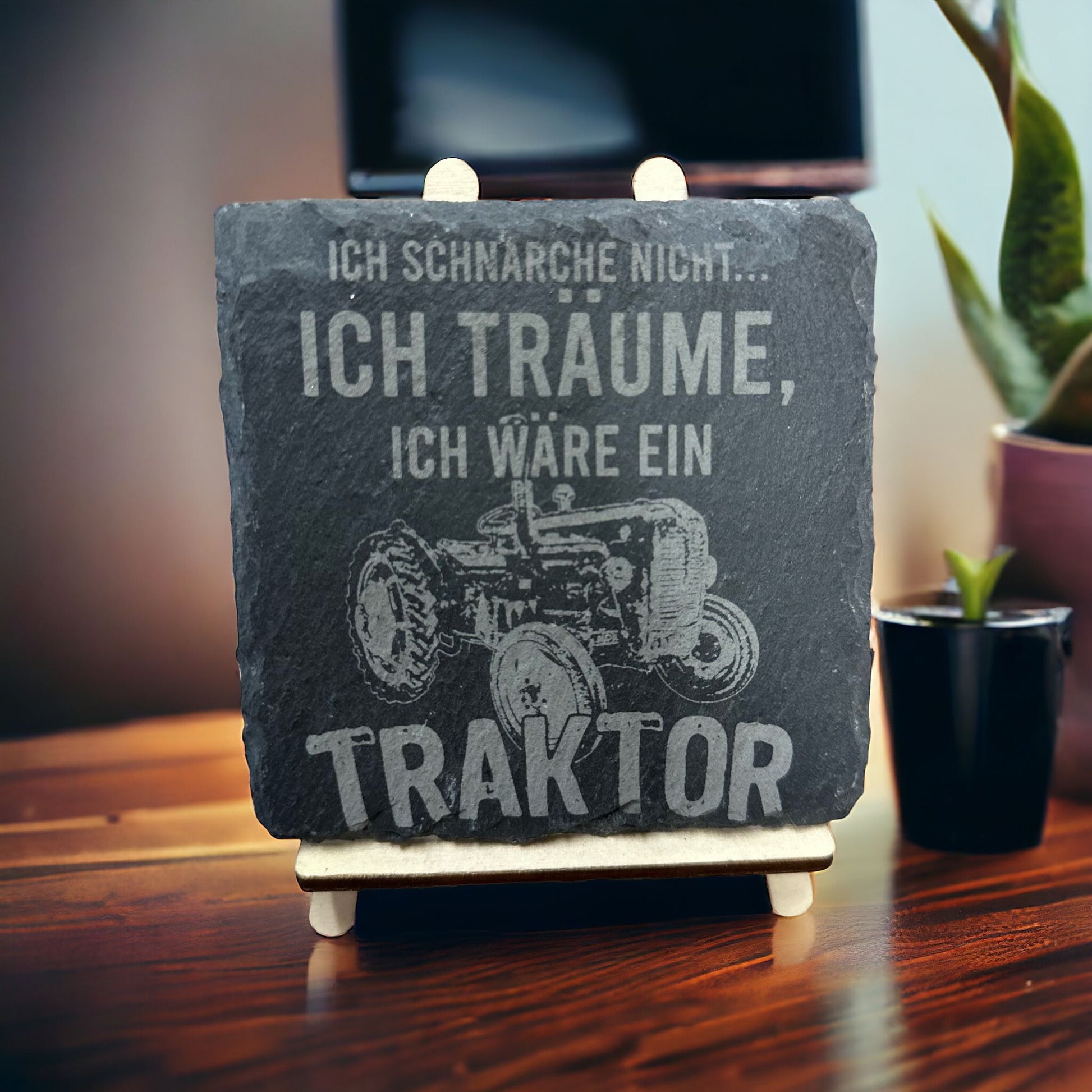 Schiefer Untersetzer "Ích schnarche nicht.. Ich träume ich wäre ein Traktor"