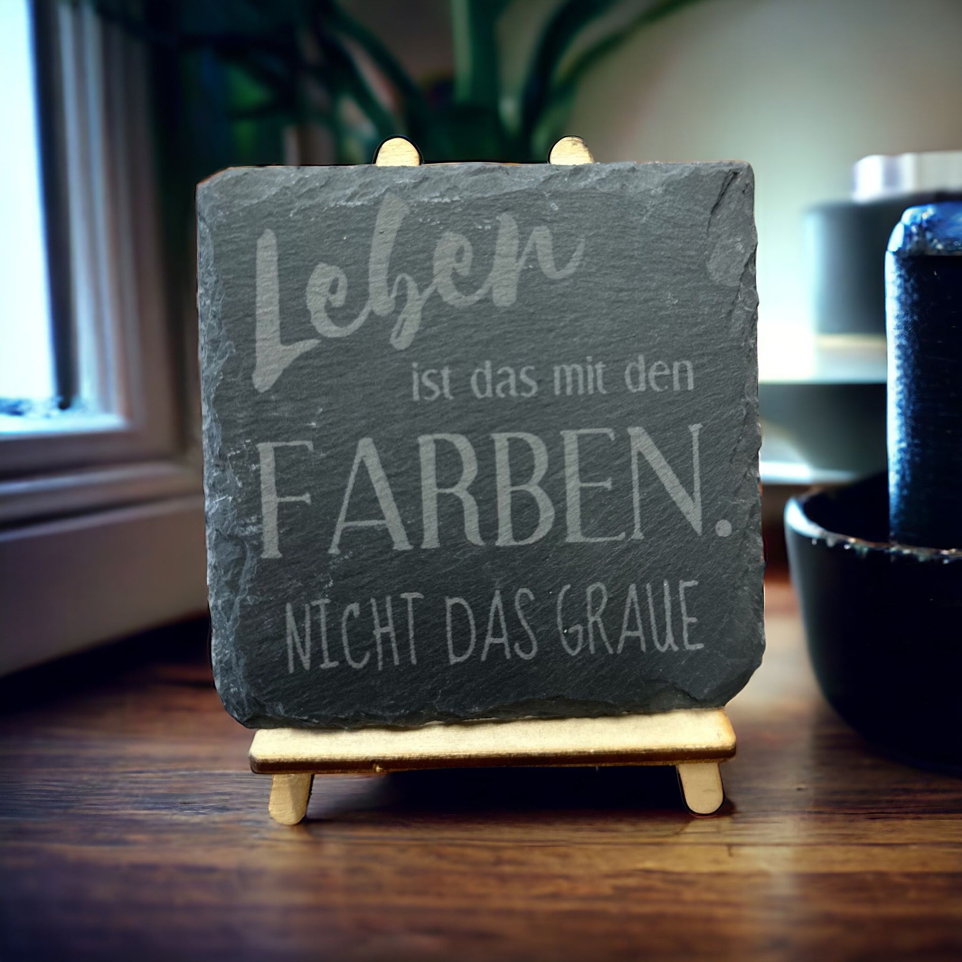 Schiefer Untersetzer "Leben ist das mit den Farben. Nicht das Graue"