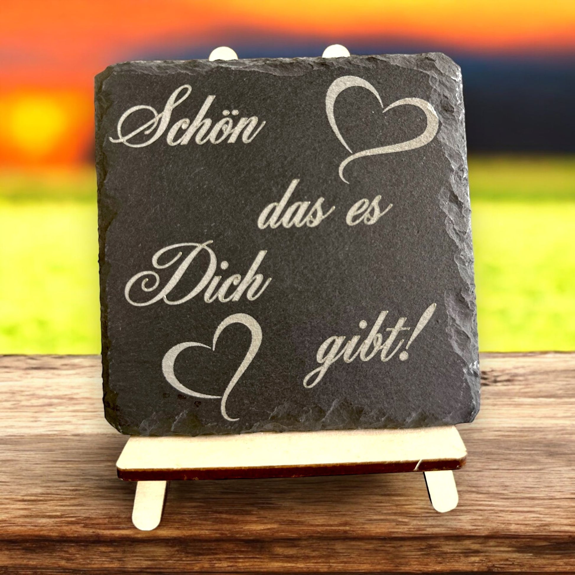 Schiefer Untersetzer " Schön das es Dich gibt!"