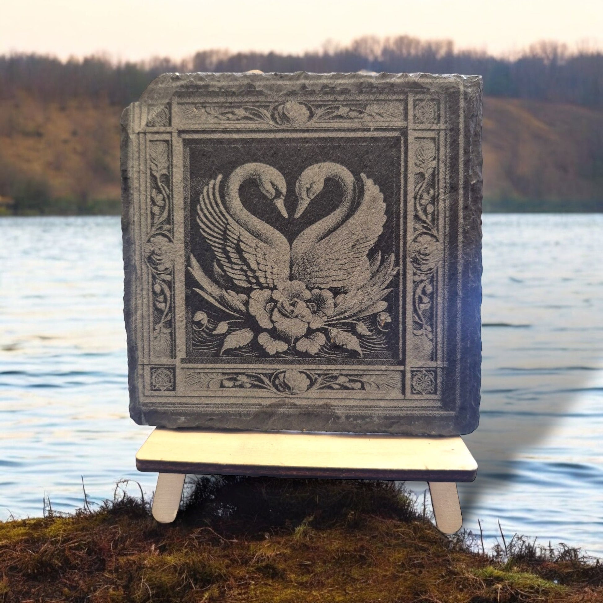 Entdecken Sie die zeitlose Eleganz unserer Schieferplatte mit künstlerischem Motiv. Die natürliche Schönheit des Schiefers verschmilzt perfekt mit dem ausdrucksstarken Design, um eine faszinierende Verbindung zwischen Natur und Kunst zu schaffen. Perfekt als Dekoration oder praktische Unterlage.