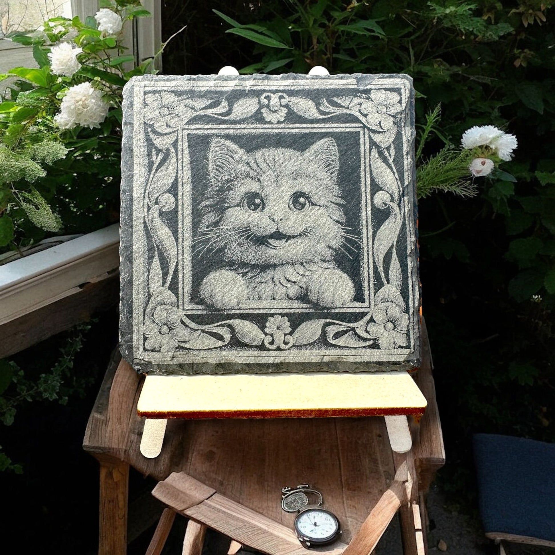 Entdecken Sie die zeitlose Eleganz unserer Schieferplatte mit künstlerischem Motiv. Die natürliche Schönheit des Schiefers verschmilzt perfekt mit dem ausdrucksstarken Design, um eine faszinierende Verbindung zwischen Natur und Kunst zu schaffen. Perfekt als Dekoration oder praktische Unterlage.