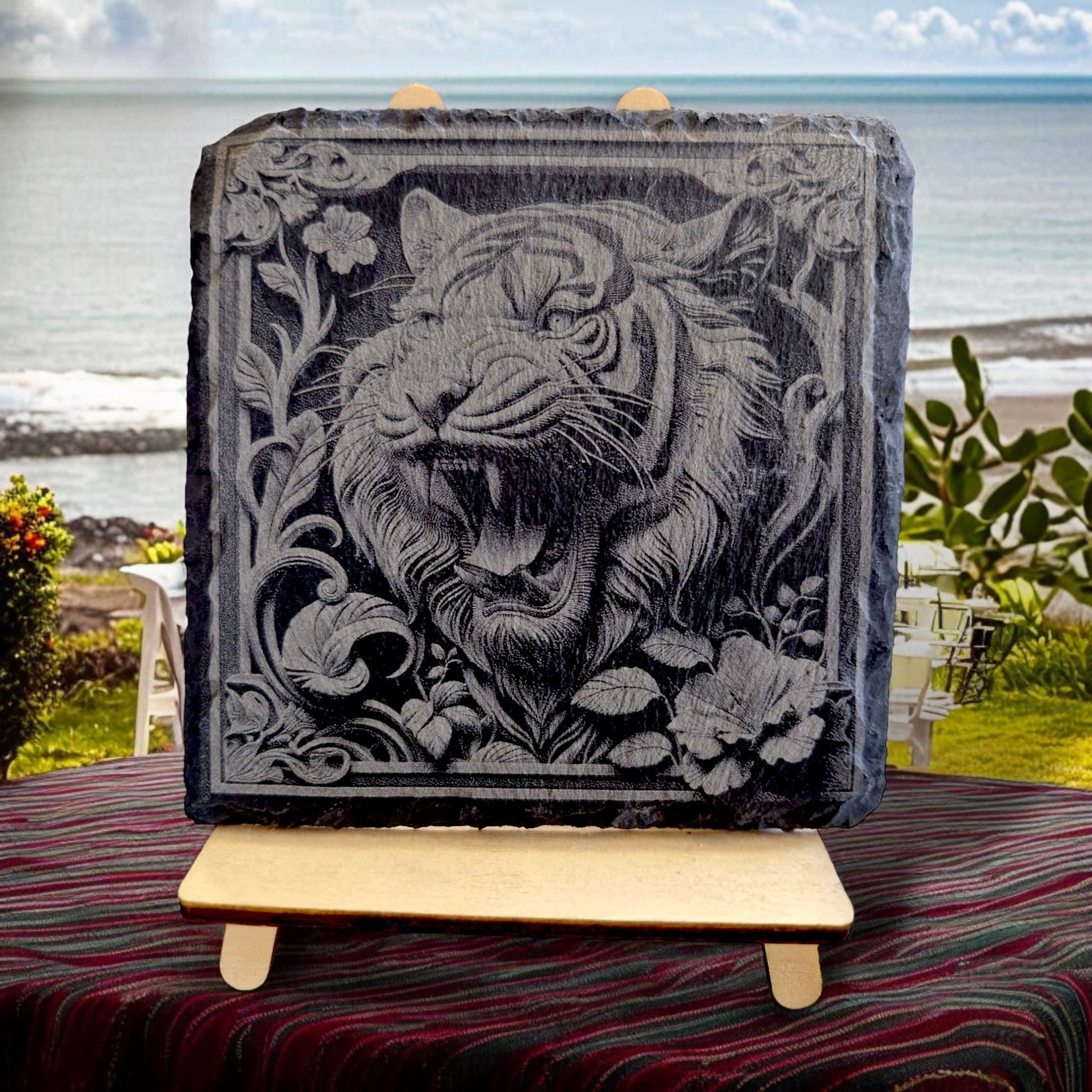 Entdecken Sie die zeitlose Eleganz unserer Schieferplatte mit künstlerischem Motiv. Die natürliche Schönheit des Schiefers verschmilzt perfekt mit dem ausdrucksstarken Design, um eine faszinierende Verbindung zwischen Natur und Kunst zu schaffen. Perfekt als Dekoration oder praktische Unterlage.