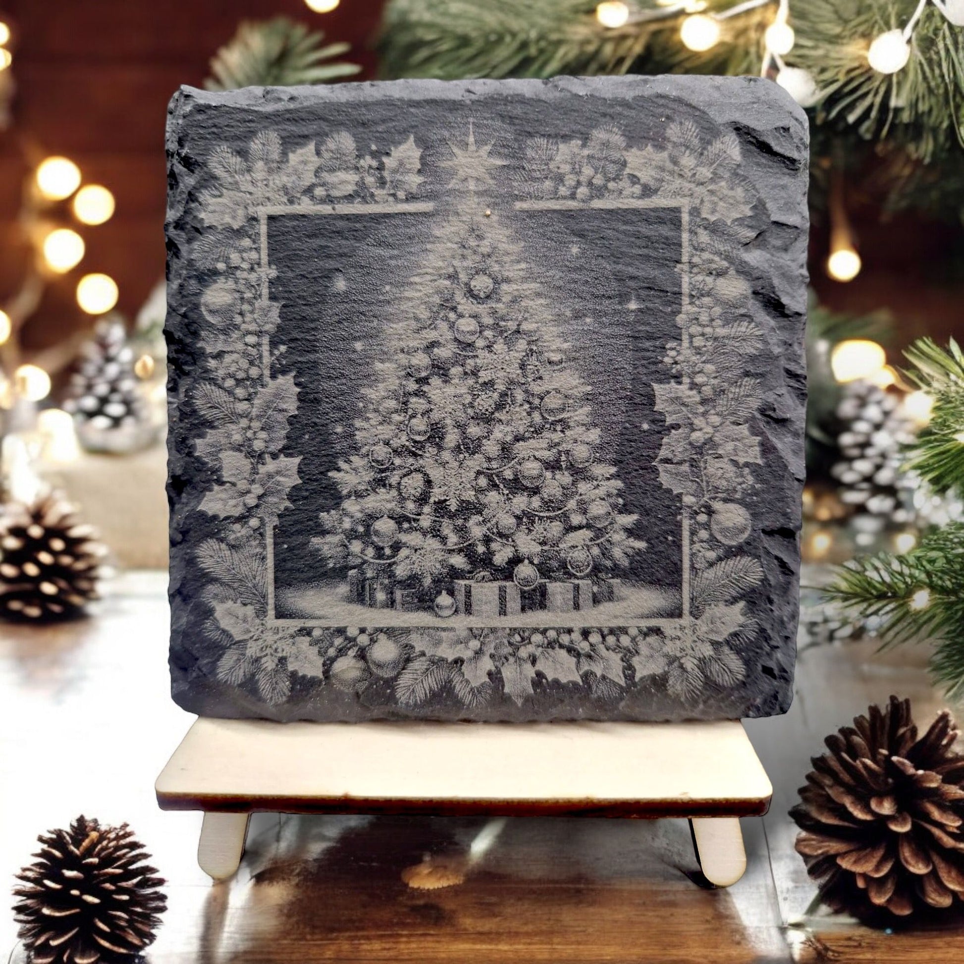 Schiefer Untersetzer "Weihnachten Tannenbaum 3 D"