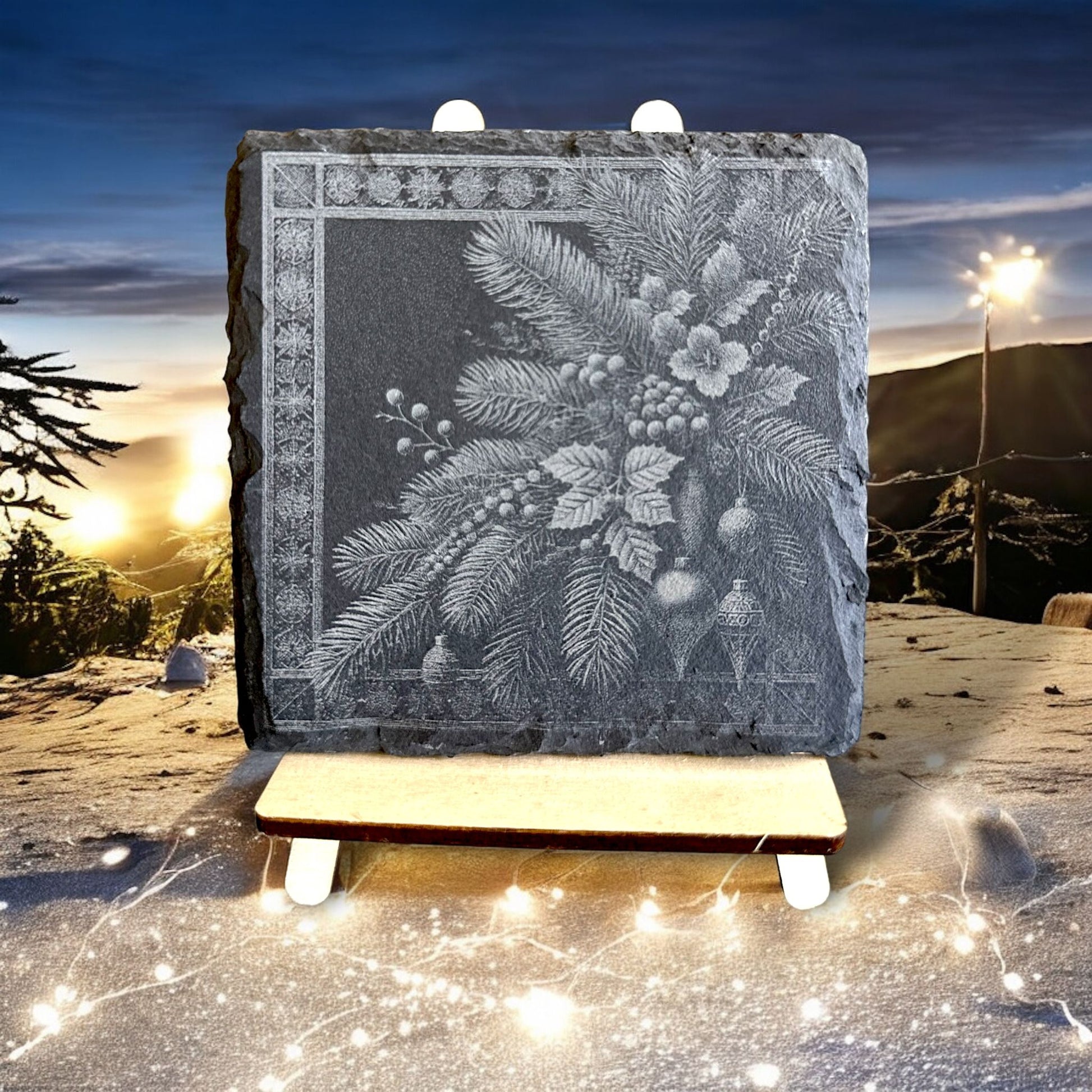 Schiefer Untersetzer "Weihnachten Zweig 3 D"